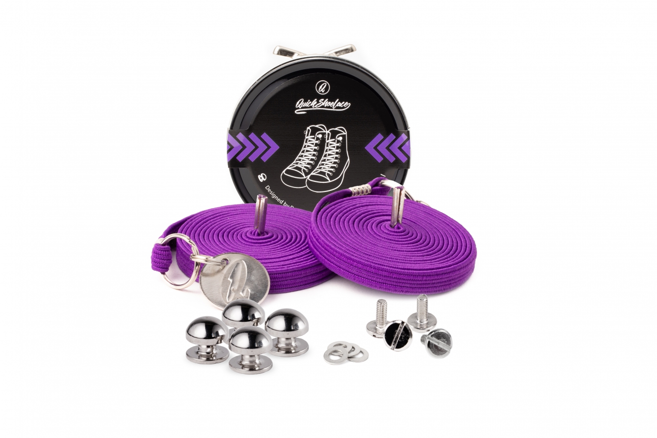 Quickshoelaces zijn elastische veters met een ring die u van boven naar beneden door de gaatjes van uw schoen steekt. Vervolgens knipt u de veter af op de gewenste lengte. De veter heeft een universele lengte van 1,2 m en past in alle veterschoenen. Clip de veter met één hand vast aan de metalen knopjes die u in de bovenste vetergaatjes van uw schoen bevestigt - en klaar.