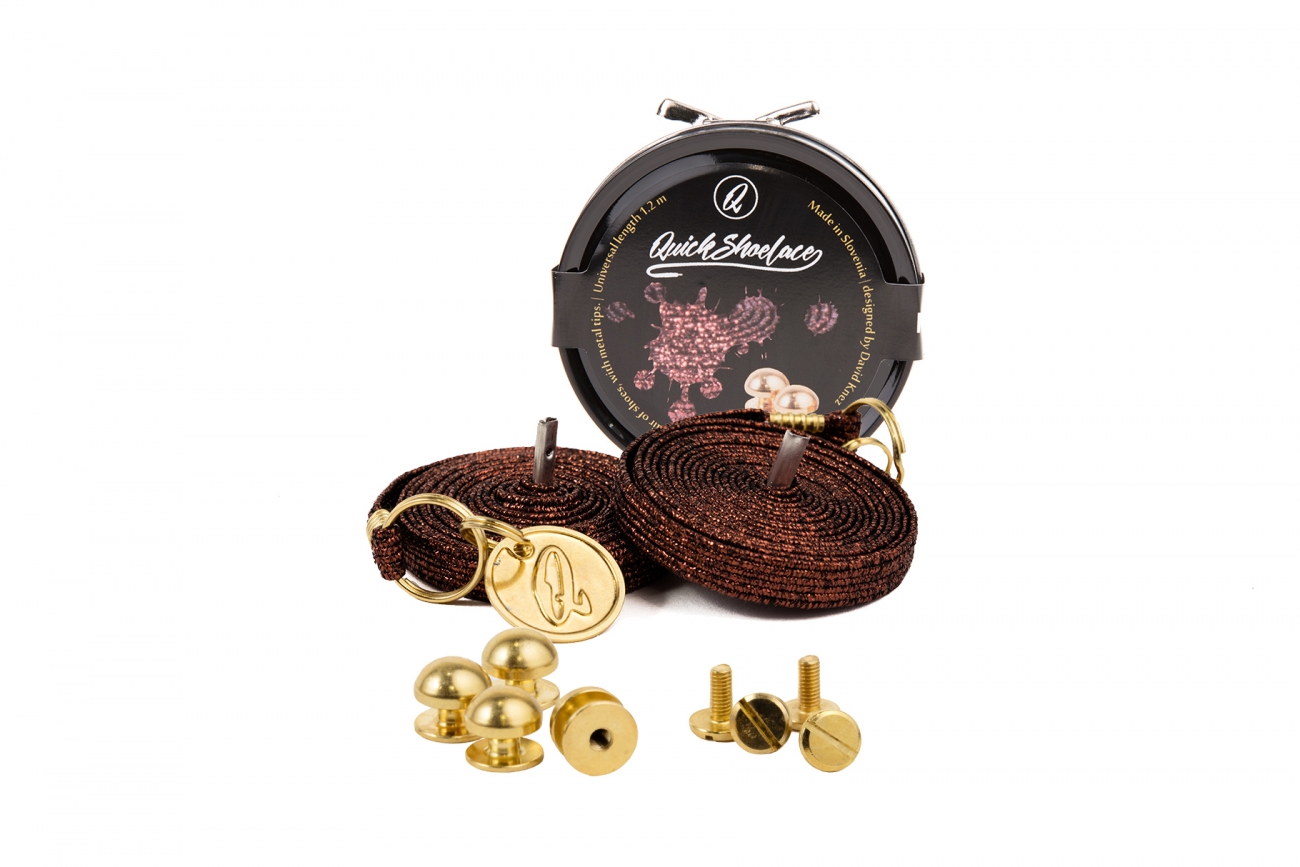 Prestige collectie: veters in prestige kleuren met 24 K goud vergulde knopjes.