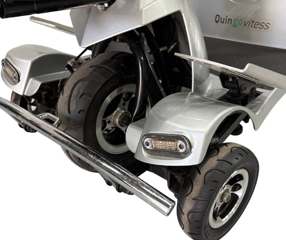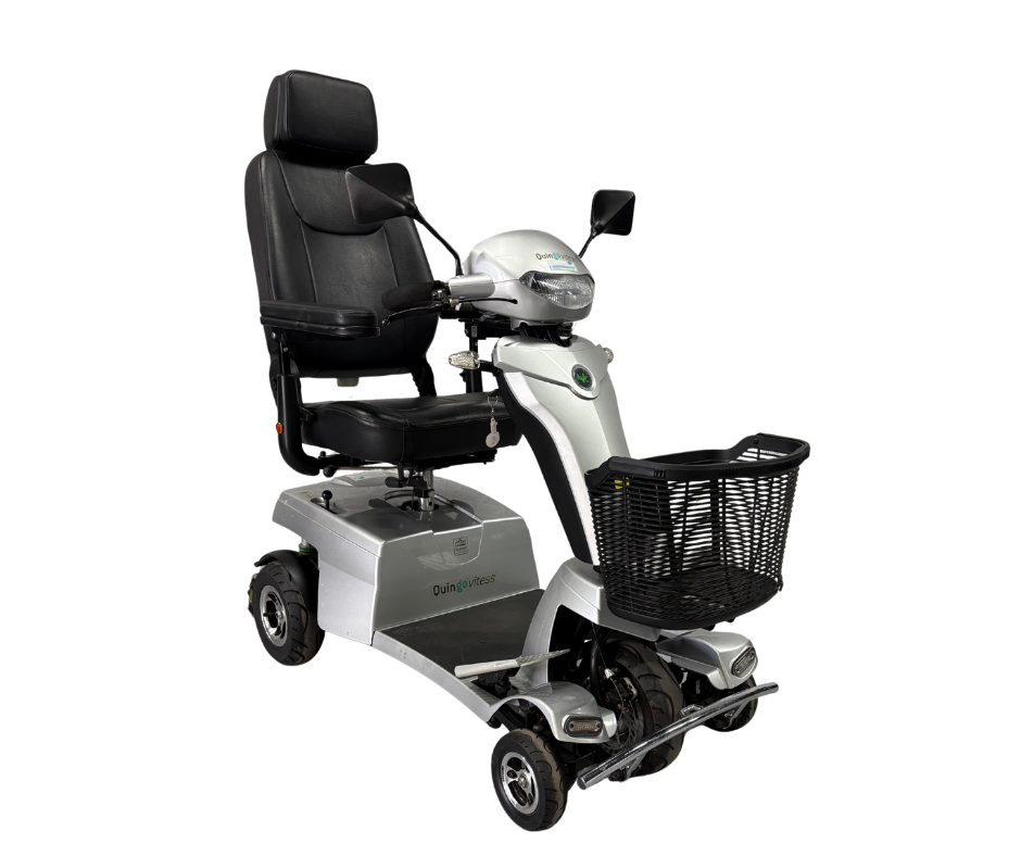 De Quingo Vitess is een opvallende en innovatieve scootmobiel met een unieke vijfwielconstructie. Dit systeem zorgt voor extra stabiliteit tijdens het rijden en tegelijkertijd voor een relatief kleine draaicirkel. Hierdoor is de scootmobiel zowel geschikt voor gebruik in woonwijken als in winkelgebieden.