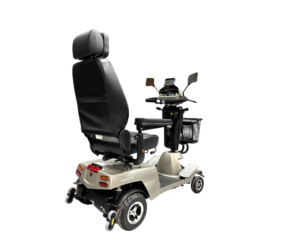 De scootmobiel wordt geleverd met nieuwe 53 Ah LP-accu’s, wat zorgt voor betrouwbare prestaties en een goede actieradius.