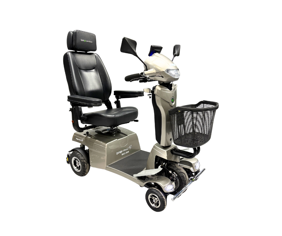De Quingo Vitesse 2 is een zeer comfortabele en stabiele scootmobiel, ontworpen voor gebruikers die maximale veiligheid en rijcomfort belangrijk vinden. Dankzij de unieke vijfwiel-technologie biedt deze scootmobiel uitstekende stabiliteit en een bijzonder prettige wegligging, ook op oneffen ondergrond.