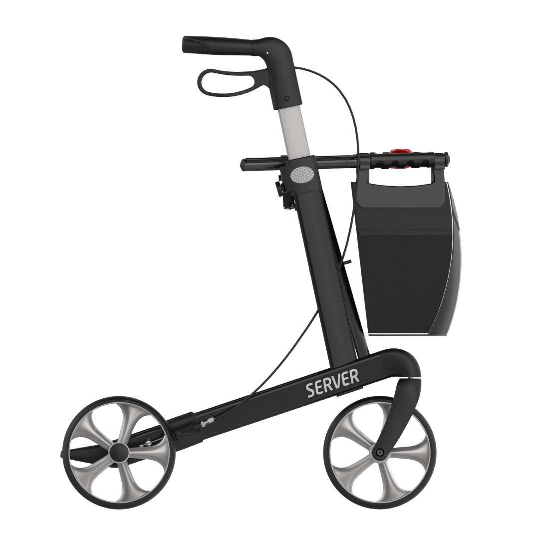 De Server rollator van Rehasense is een stijlvolle, stabiele en betrouwbare rollator met een uniek driehoekig frameontwerp. Dankzij het lichte aluminium frame weegt deze rollator slechts 7,2 kg (zonder tas) en behoort hij tot de lichtste in zijn klasse met een draagvermogen van 150 kg. De Comfort-uitvoering met zachte PU-wielen biedt extra rijcomfort, ideaal voor gebruik op oneffen ondergrond, zowel binnen als buiten.