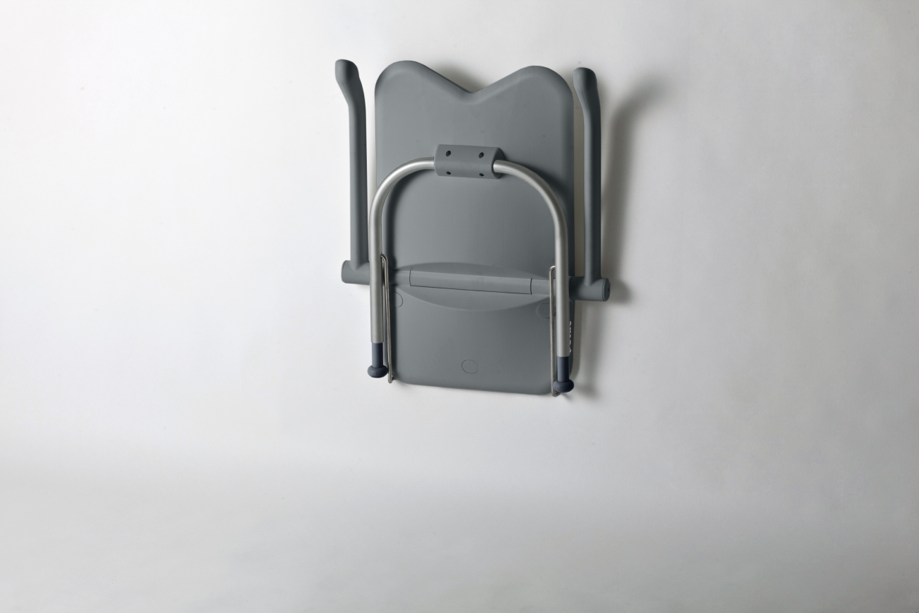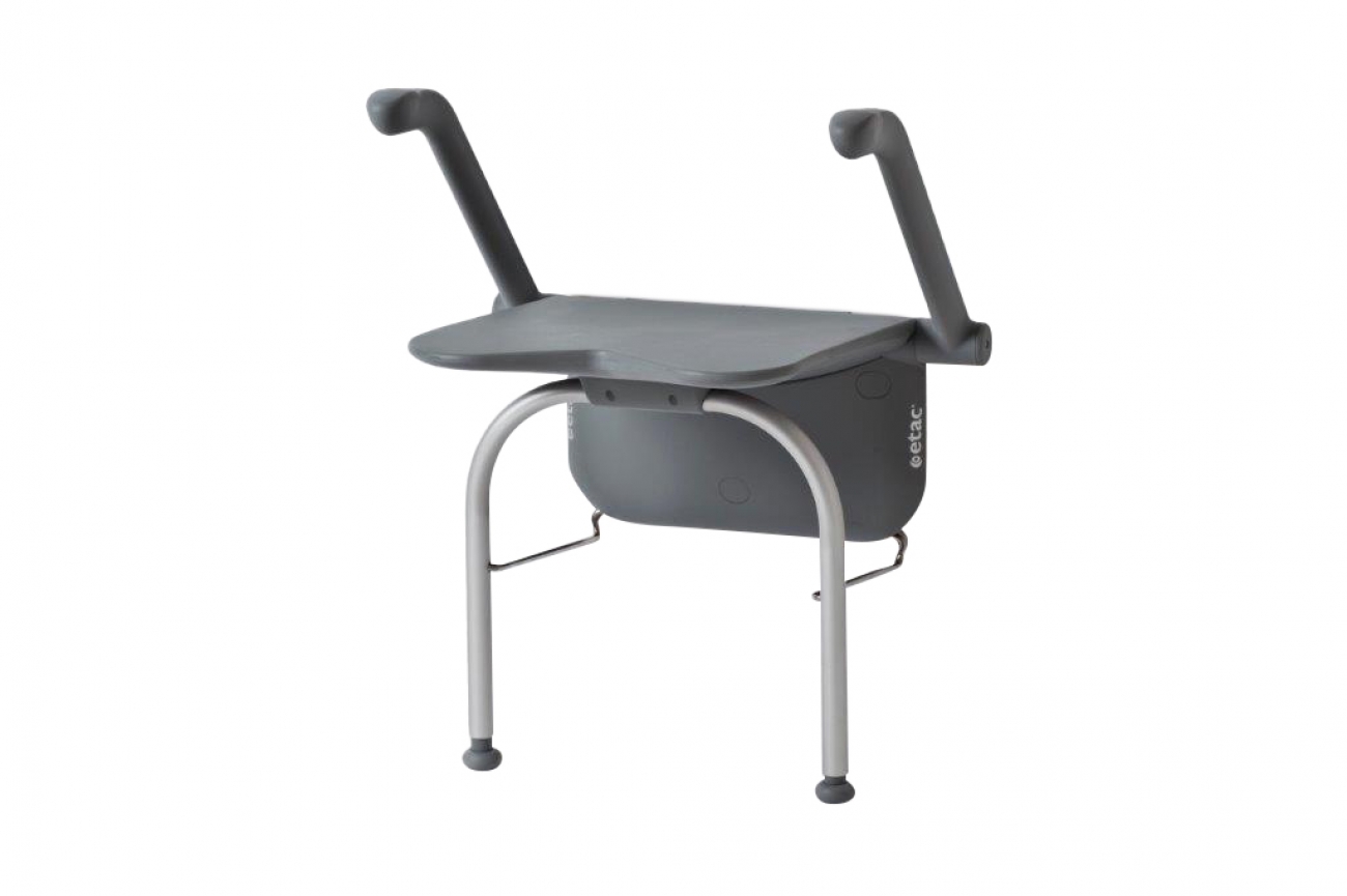 Douchezitting met ergonomische, opklapbare armsteunen met een anti-slip oppervlak en in hoogte verstelbare steunpoten voor extra stabiliteit.