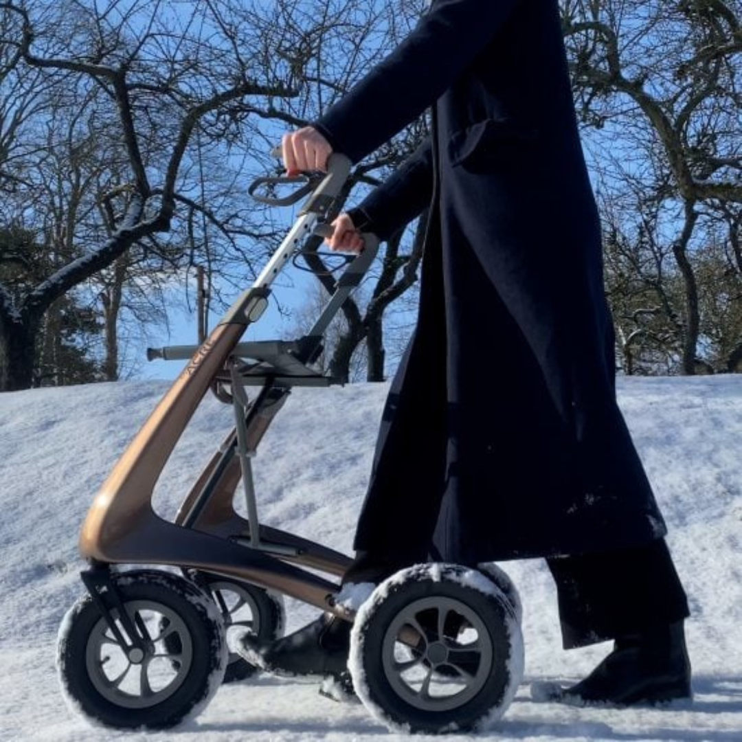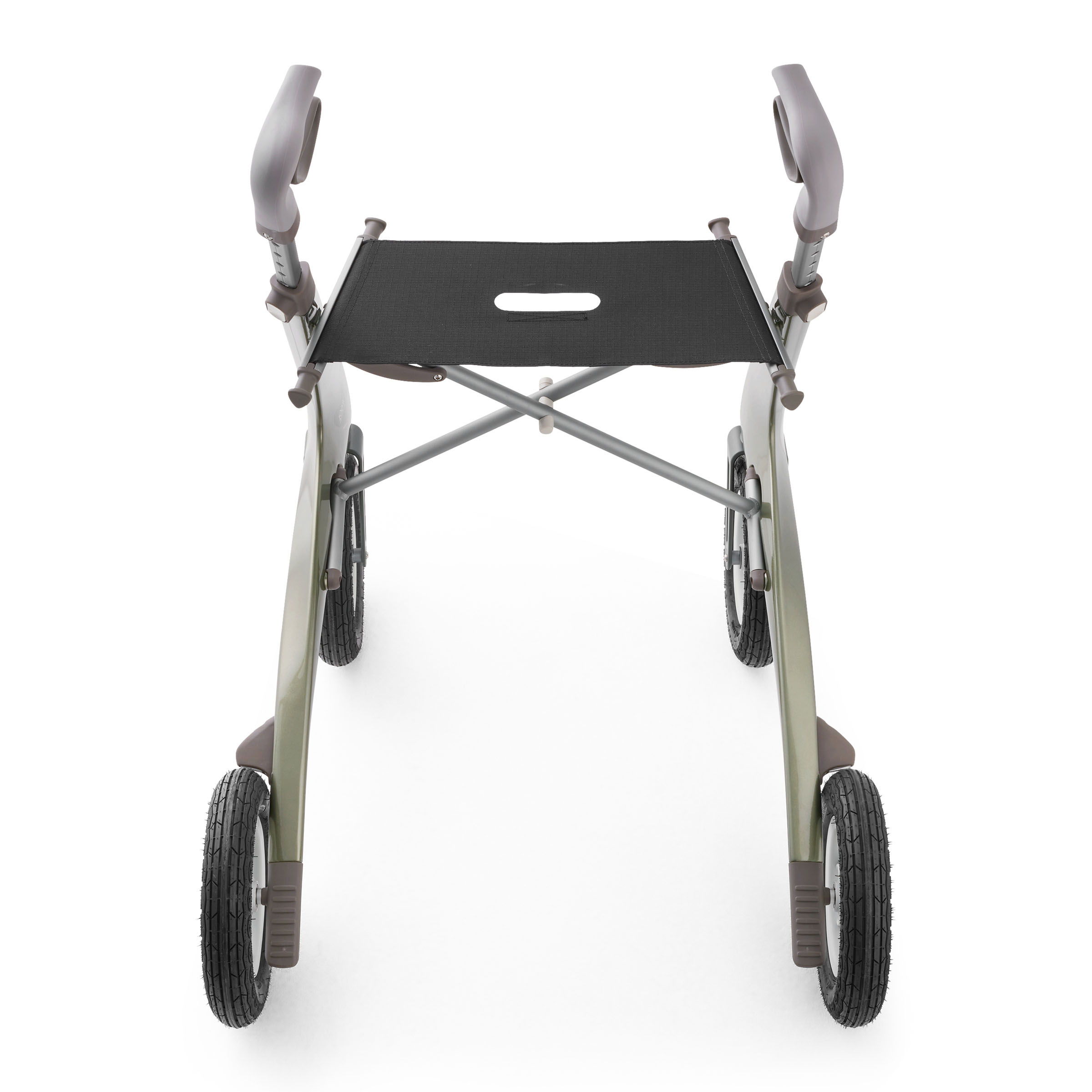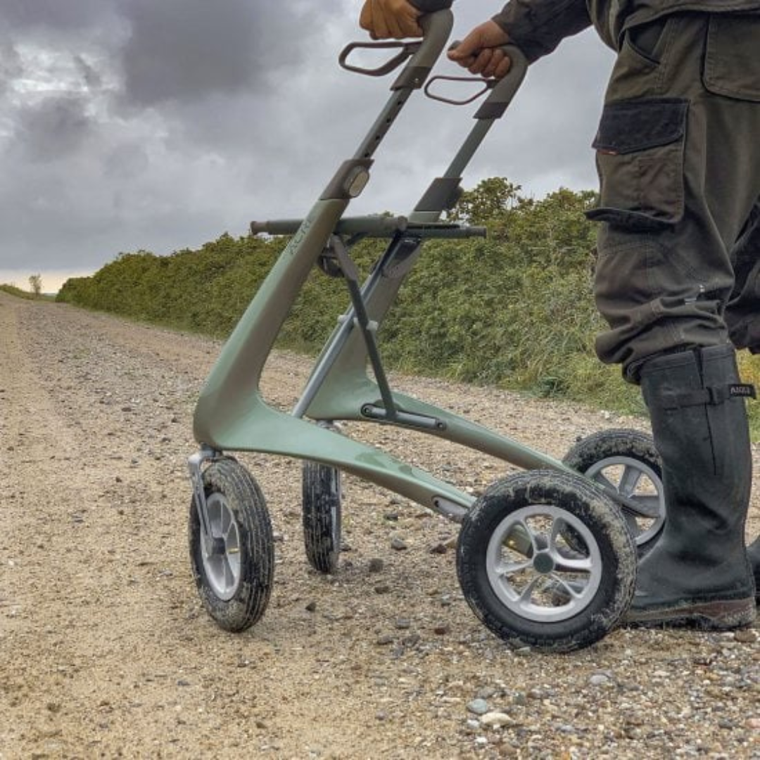 Een standaardrollator is vooral geschikt voor vlakke ondergronden, maar zodra je gras, grind, sneeuw of ongelijke trottoirs tegenkomt, wordt het een uitdaging. De Carbon Overland is juist voor die momenten gemaakt: