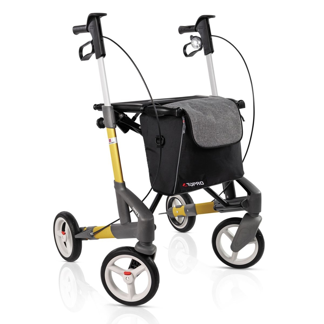 De geel kleur geeft het model een frisse, persoonlijke tint. Bovendien biedt TOPRO een breed scala aan kleuren en accessoires, zodat u uw rollator kunt afstemmen op uw eigen stijl en voorkeuren.
