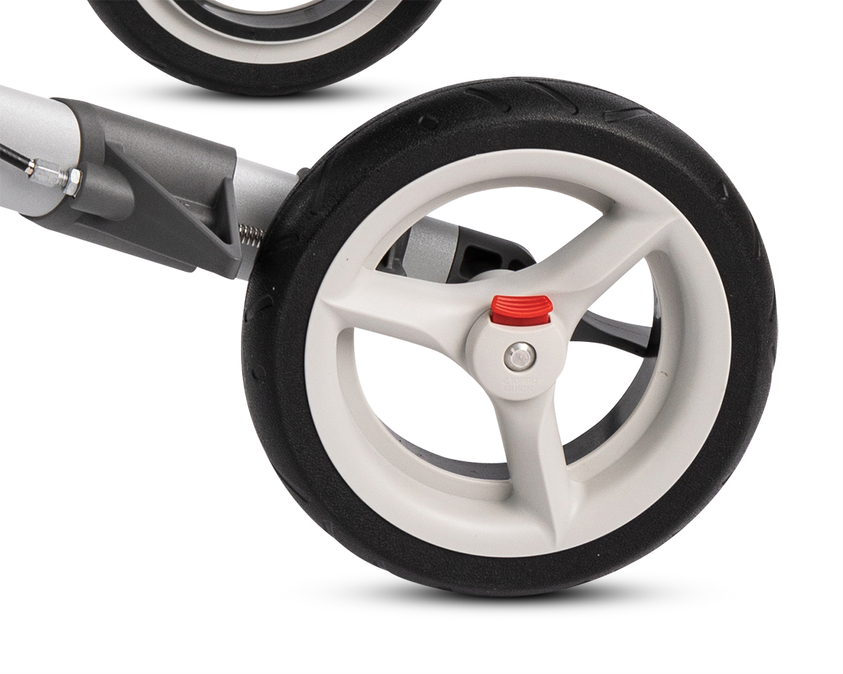 Met een gewicht van slechts 7,8 kg is deze rollator uitzonderlijk licht en eenvoudig te hanteren. De schokabsorberende banden en kogellagers in de wielen zorgen voor een stabiele en comfortabele rit, zelfs op oneffen terrein.