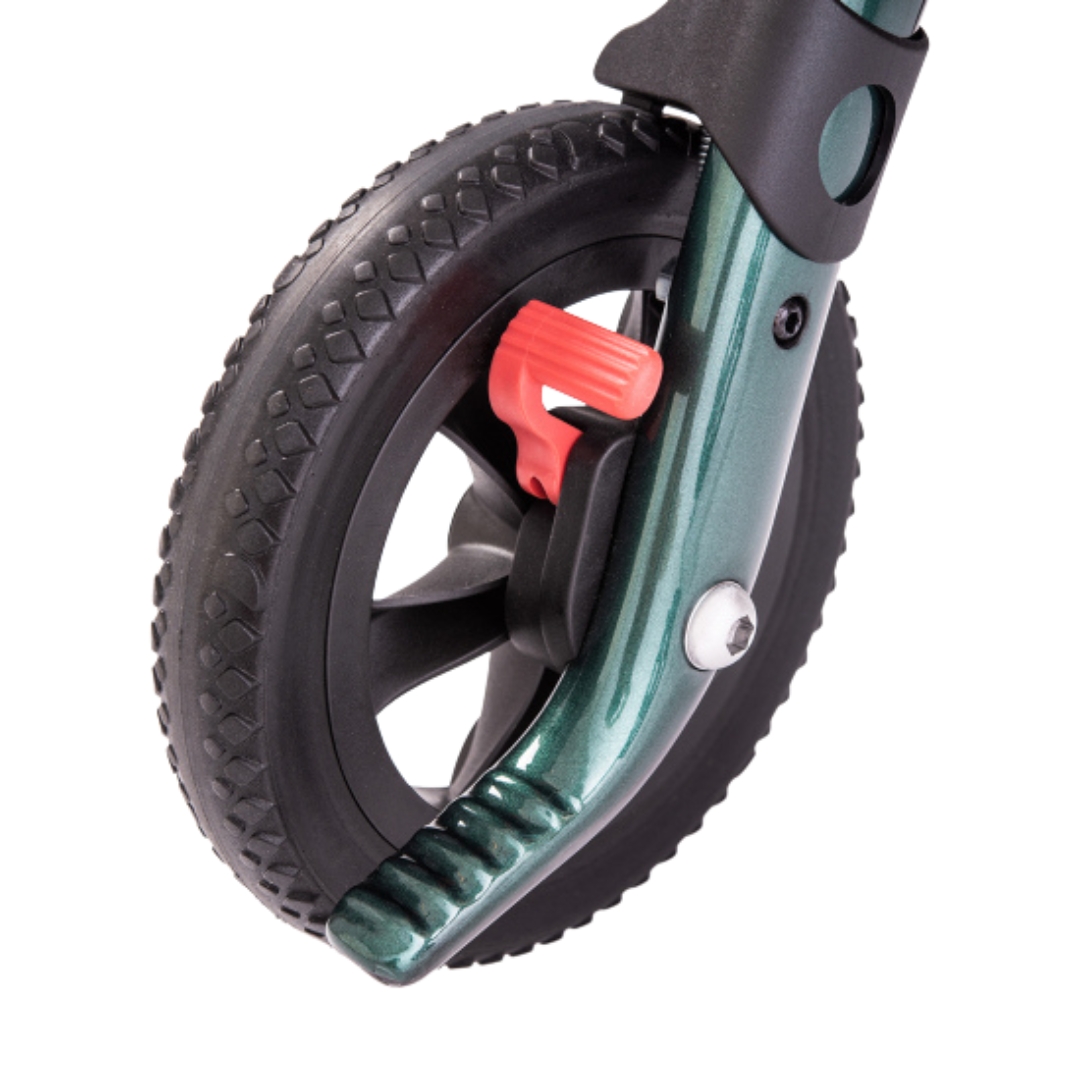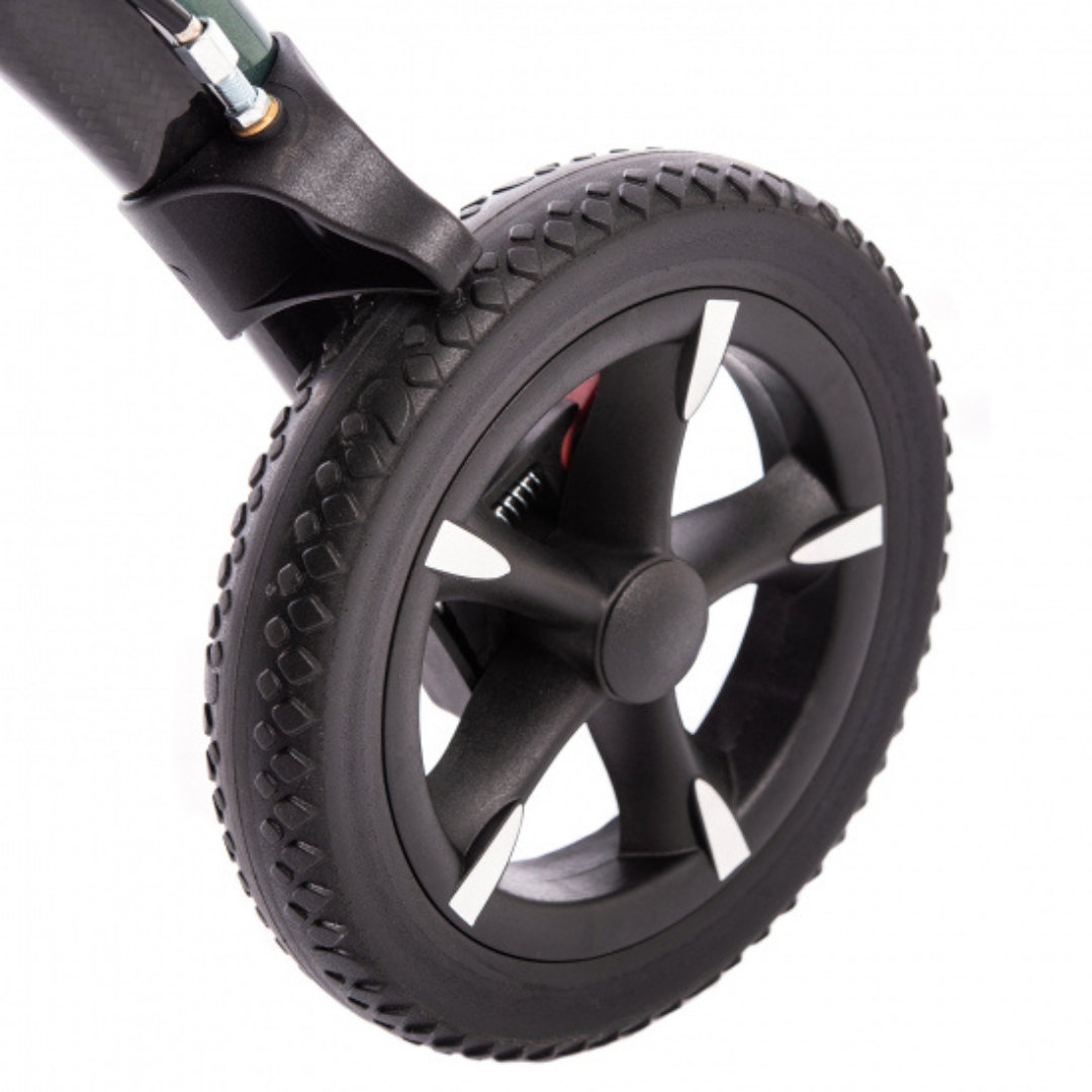 Dankzij de schokdempende all-terrain banden en ergonomische kurkhandgrepen geniet u van maximaal comfort, zelfs op oneffen terrein. Met een inklapbaar design en een breedte van slechts 22 cm in gevouwen toestand is de Carbon Rollator eenvoudig te vervoeren en past hij in vrijwel elke auto. De meegeleverde magneetsluiting-tas biedt voldoende opbergruimte en is eenvoudig toegankelijk. Of u nu over asfalt, onverharde paden of door drukke stadsstraten loopt, de stille en soepele wielen zorgen voor een prettige rijervaring. Bovendien zorgen de vele reflectoren op het frame en de wielen voor extra veiligheid in het donker.