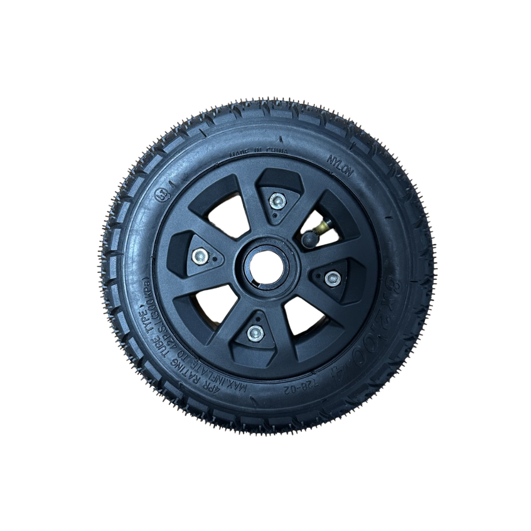 Deze originele buitenband + velg 8x2.00-4 is speciaal ontworpen als vervangingsonderdeel voor de achterwielen van onder andere de Excel Xena en i-Go scootmobielen met een naafmaat van 19 mm. De band is vervaardigd uit hoogwaardig nylon en biedt uitstekende grip, duurzaamheid en rijcomfort.