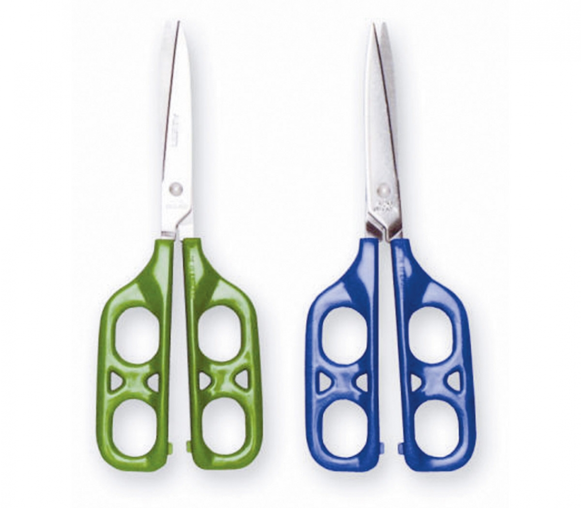 Deze schaar is speciaal ontwikkeld om het knippen te leren met een begeleider.