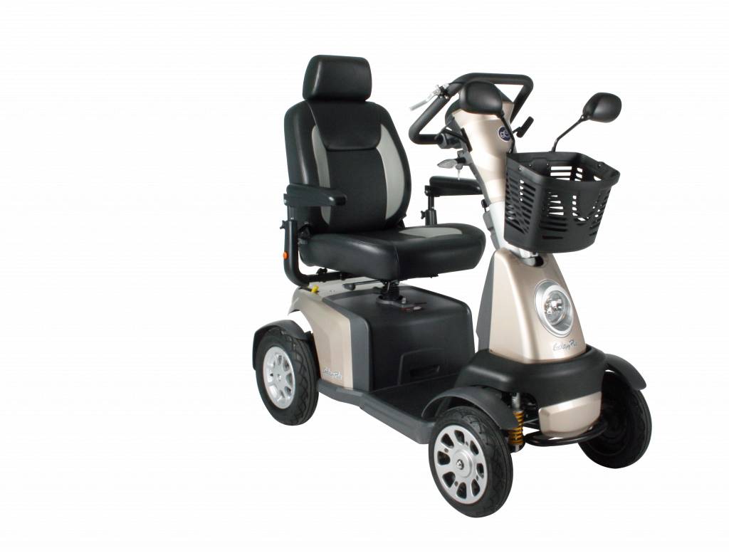 De vierwieler scootmobiel Excel Galaxy Plus 4 in de kleur Champagne 20KM per uur.