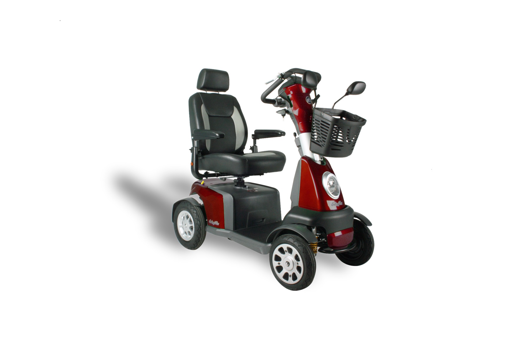 4 wieler scootmobiel Excel Galaxy Plus 4 in de kleur Tuscan Red 20KM per uur.