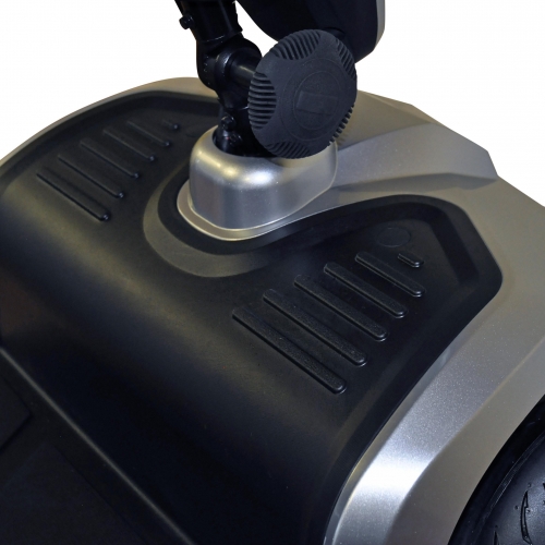 Onder de luxe stoel zit een uitbreidingsbeugel voor bijvoorbeeld een mand of koffer achterop te monteren voor extra opbergruimte of om een stokhouder te monteren.