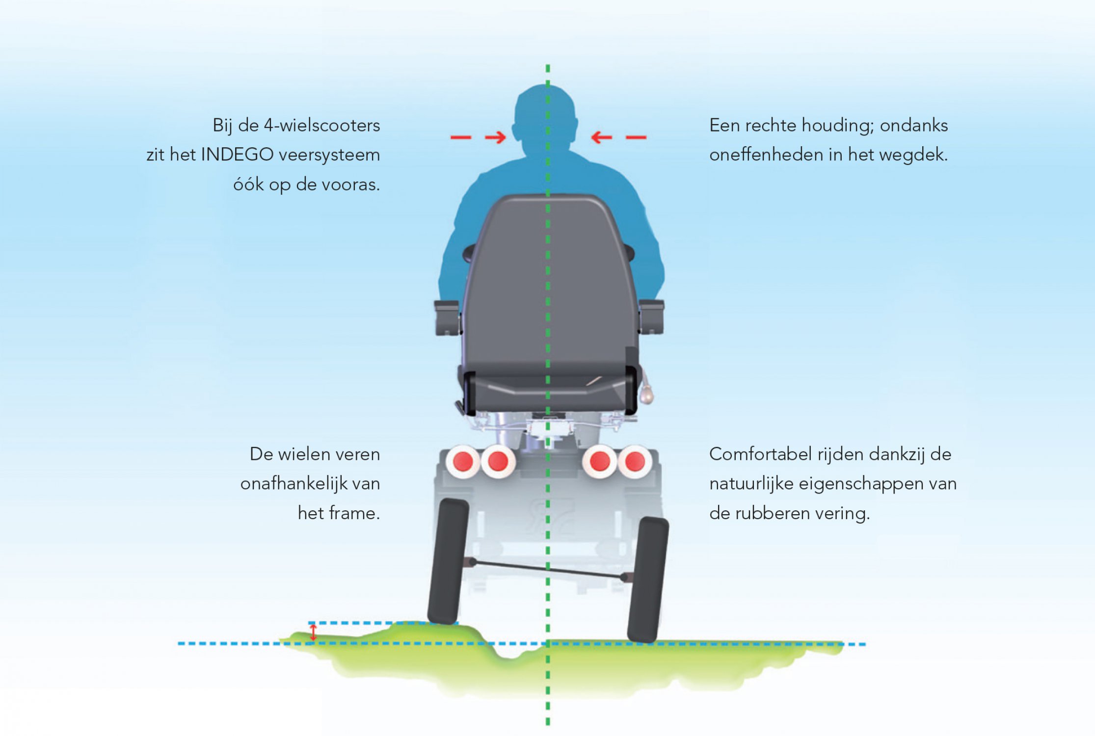 Kent u de Solo al? Een topklasse scootmobiel met extra hoog comfortniveau, volledig naar uw wensen op maat geleverd. Het unieke, gepatenteerde INDEGO veersysteem is naar keuze sportief, comfortabel of extra geveerd afgesteld. Dit maakt deze scootmobiel uitermate geschikt voor lange afstanden en voor mensen met forse pijnklachten, zoals bij spierziekten, rugklachten en reuma.