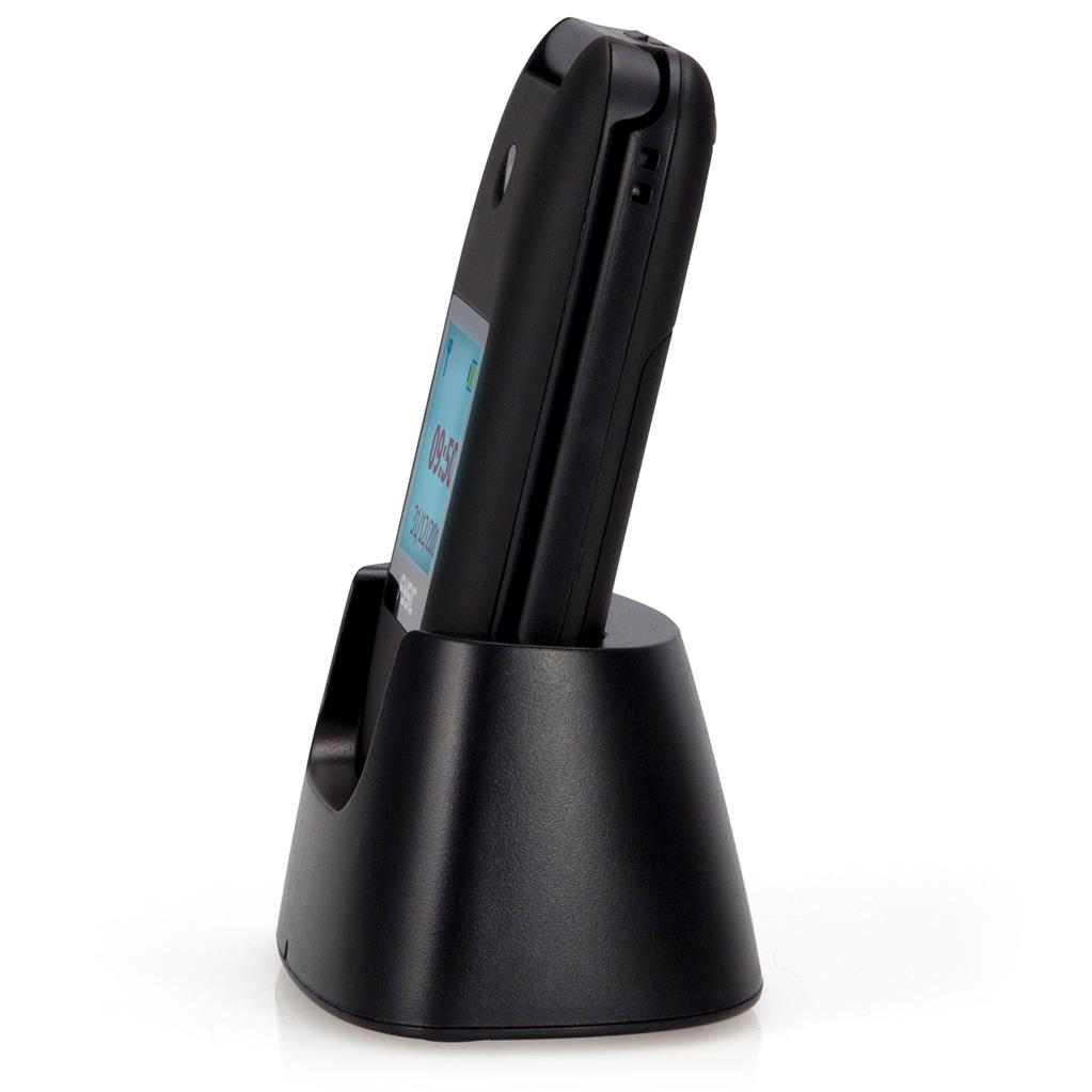 Voor het opladen heeft u geen kabeltje nodig, want u krijgt er een laadstation bij. Dit is een klaptelefoon waar niks aan ontbreekt voor de liefhebber van eenvoud, met eigentijdse mogelijkheden.