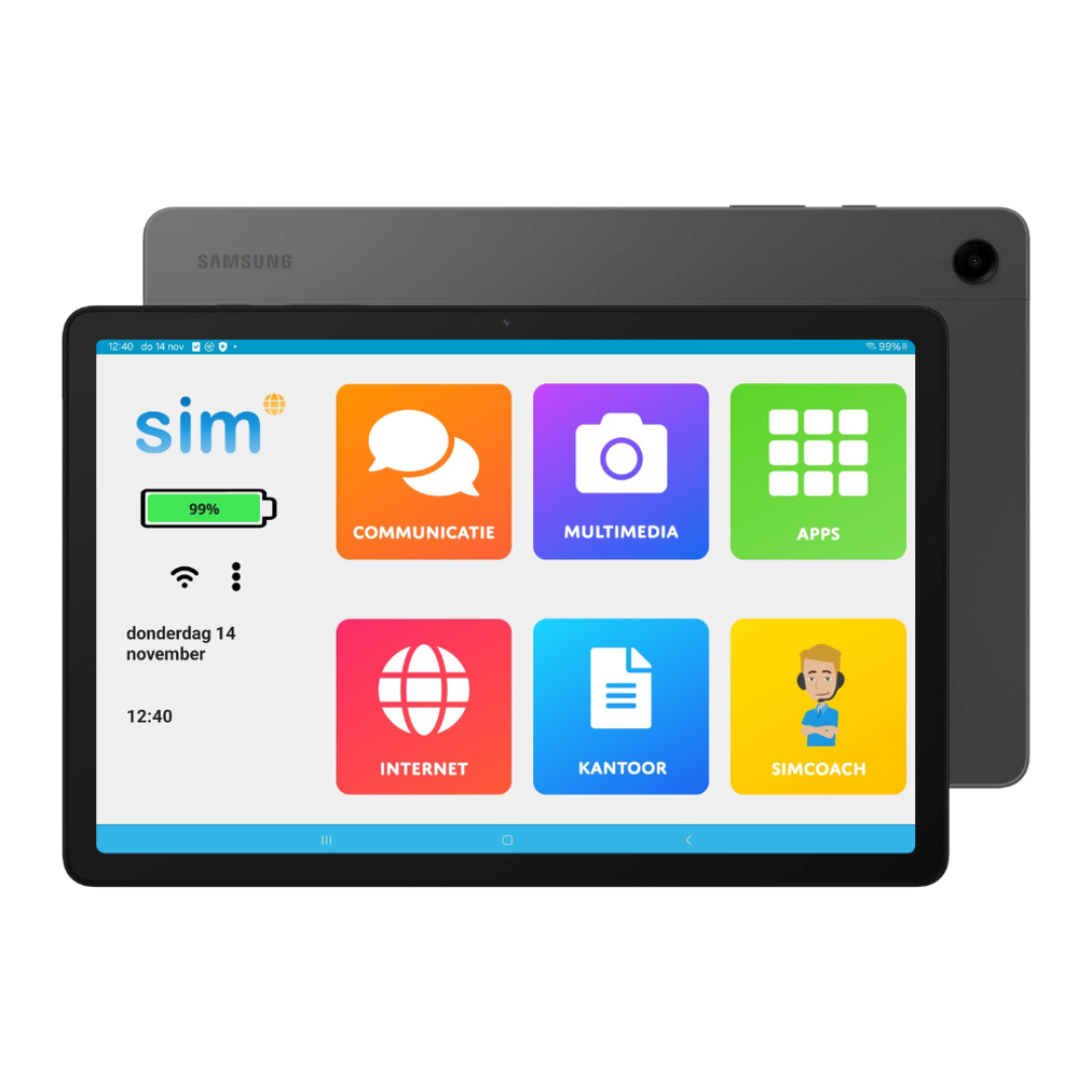 De SimTab 6 is dé meest gebruikte senioren tablet in Nederland. Speciaal ontwikkeld voor ouderen die eenvoudig willen internetten, e-mailen en beeldbellen, zonder ingewikkelde instellingen. Dankzij het overzichtelijke SimOS besturingssysteem en de grote, duidelijke pictogrammen is deze tablet bijzonder gebruiksvriendelijk.