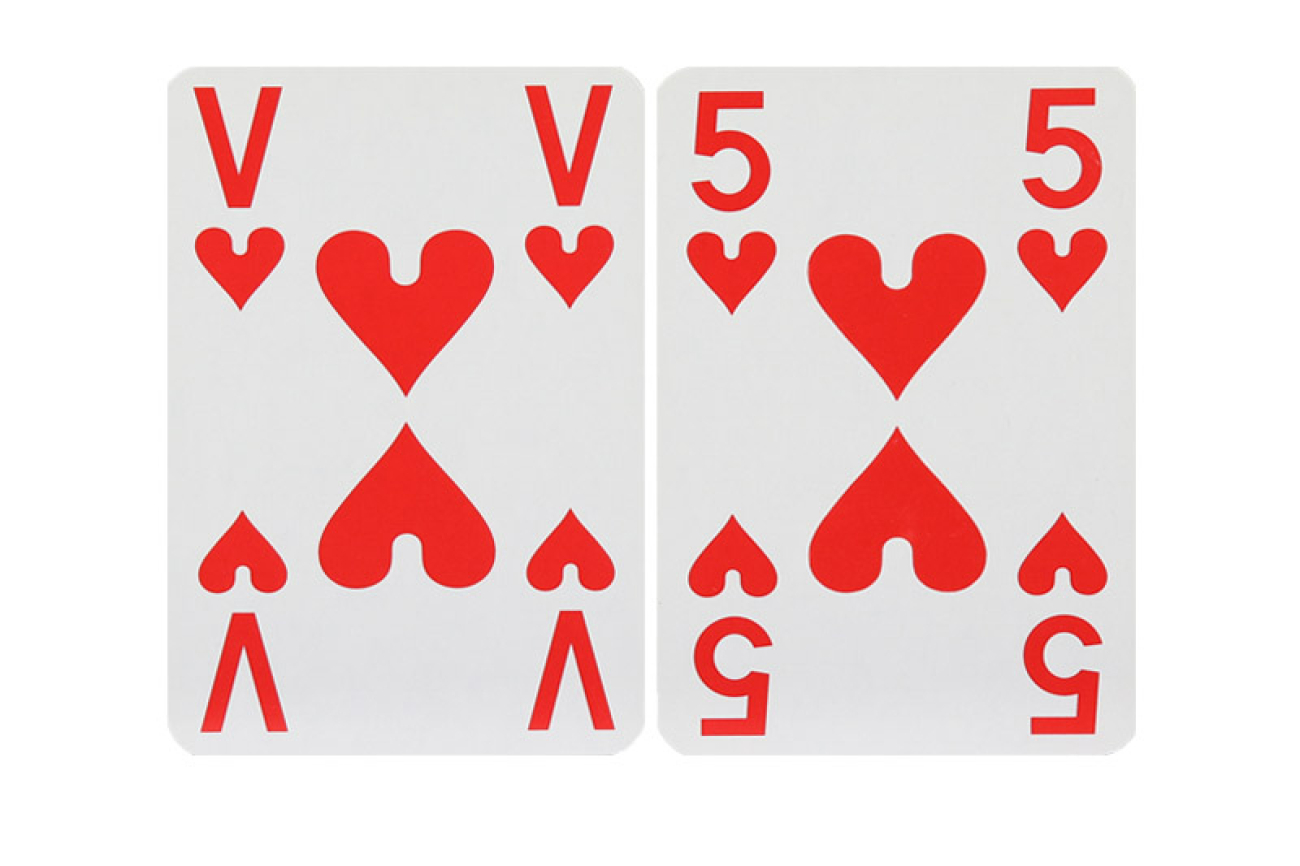 SenseWorks speelkaarten in normaal formaat. Zonder afbeeldingen en met extra grote cijfers en letters. Twee sets van 52 kaarten en 2 jokers.