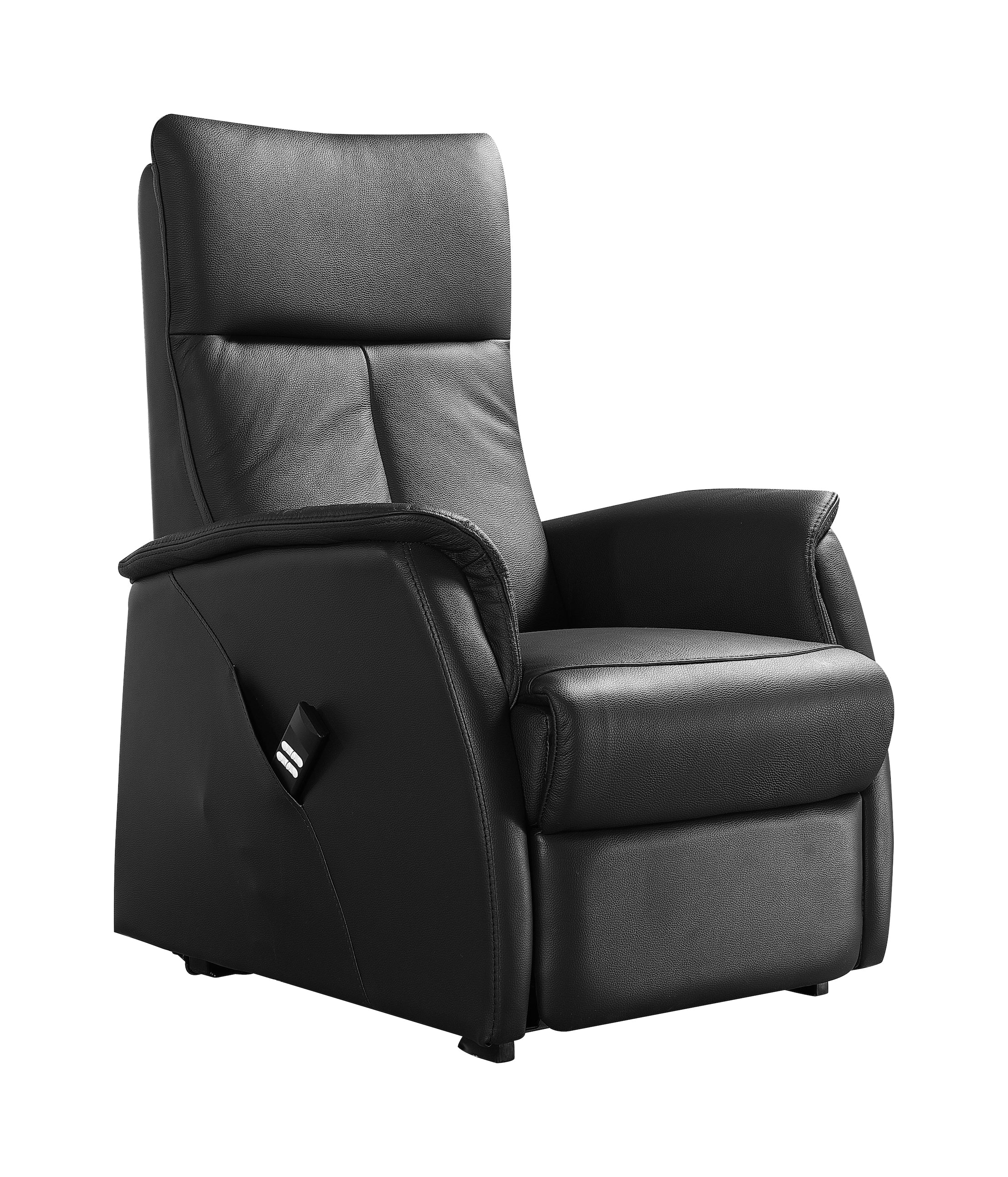 De Sta-Op en Relaxfauteuil Flex van Livorno in maat Large biedt optimale ondersteuning bij het opstaan en comfortabel ontspannen. Uitgevoerd in zwart skay leder, onderhoudsvriendelijk en geschikt voor dagelijks gebruik.