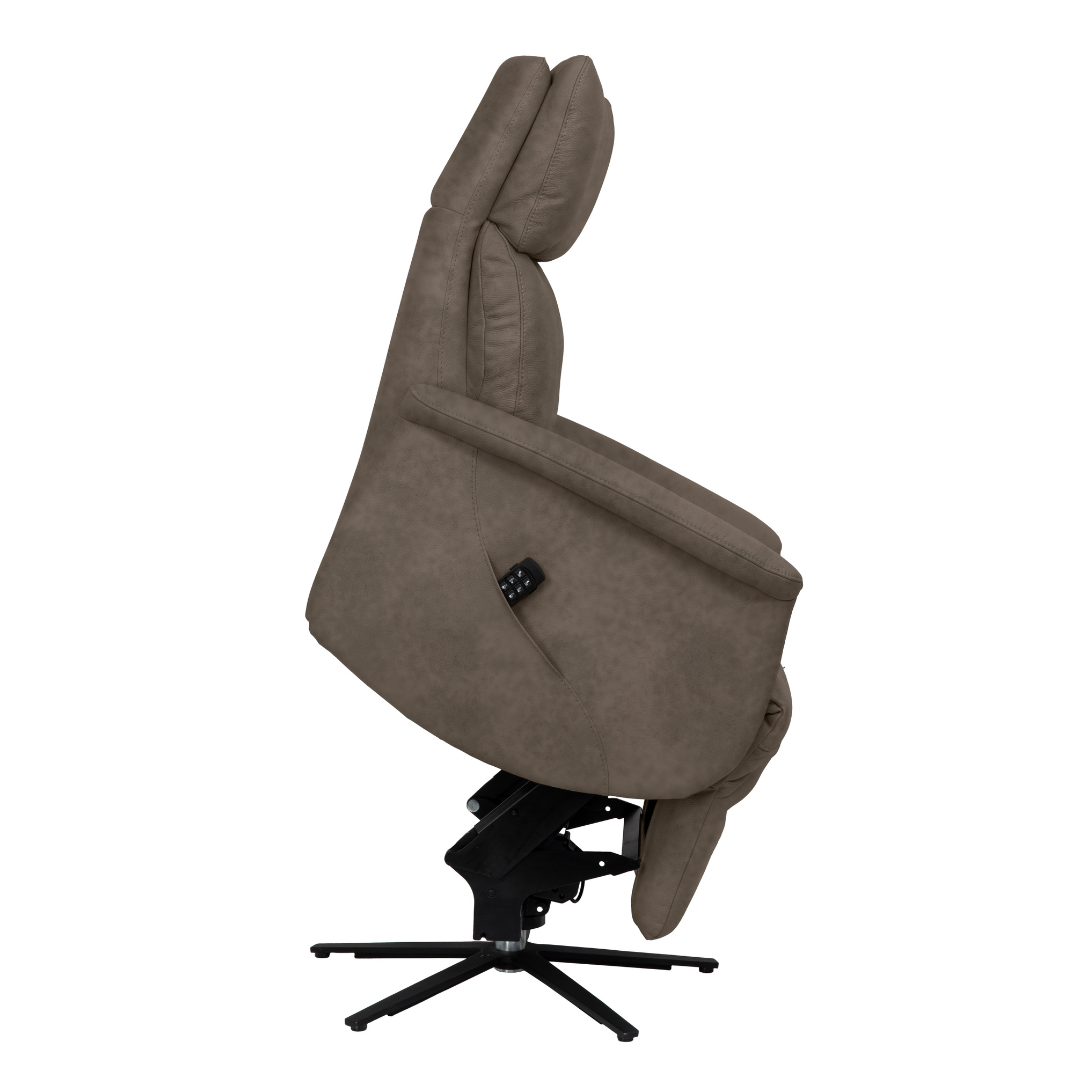 De Livorno Mistral sta-op-stoel is een luxe 3-motorige relaxfauteuil met draaivoet, accu en verstelbare hoofdsteun. Comfortabel, modern en zonder snoeren in huis.