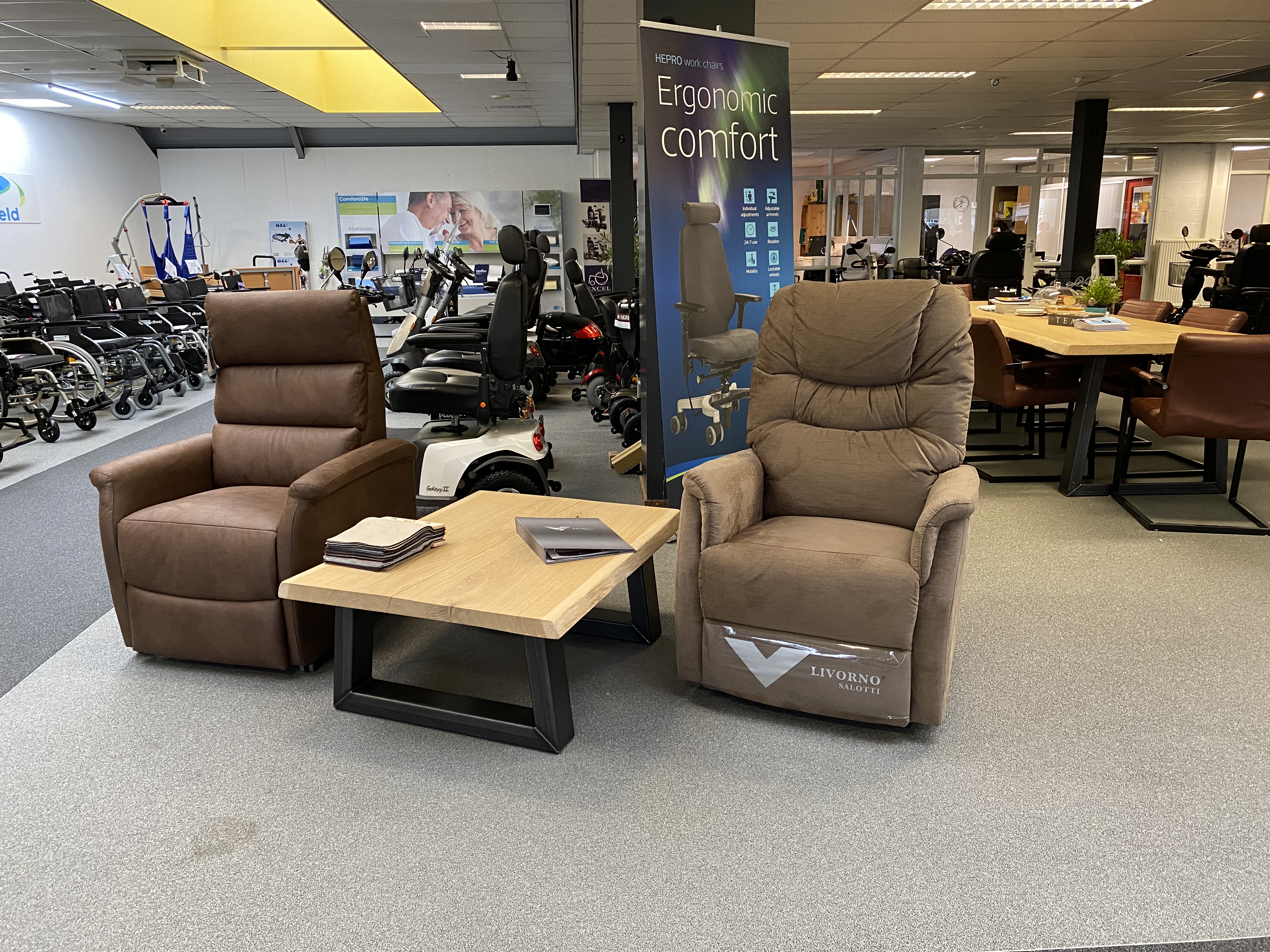 Deze stoel is in 2 kleuren leverbaar en kunt u komen bekijken en testen in onze showroom.
