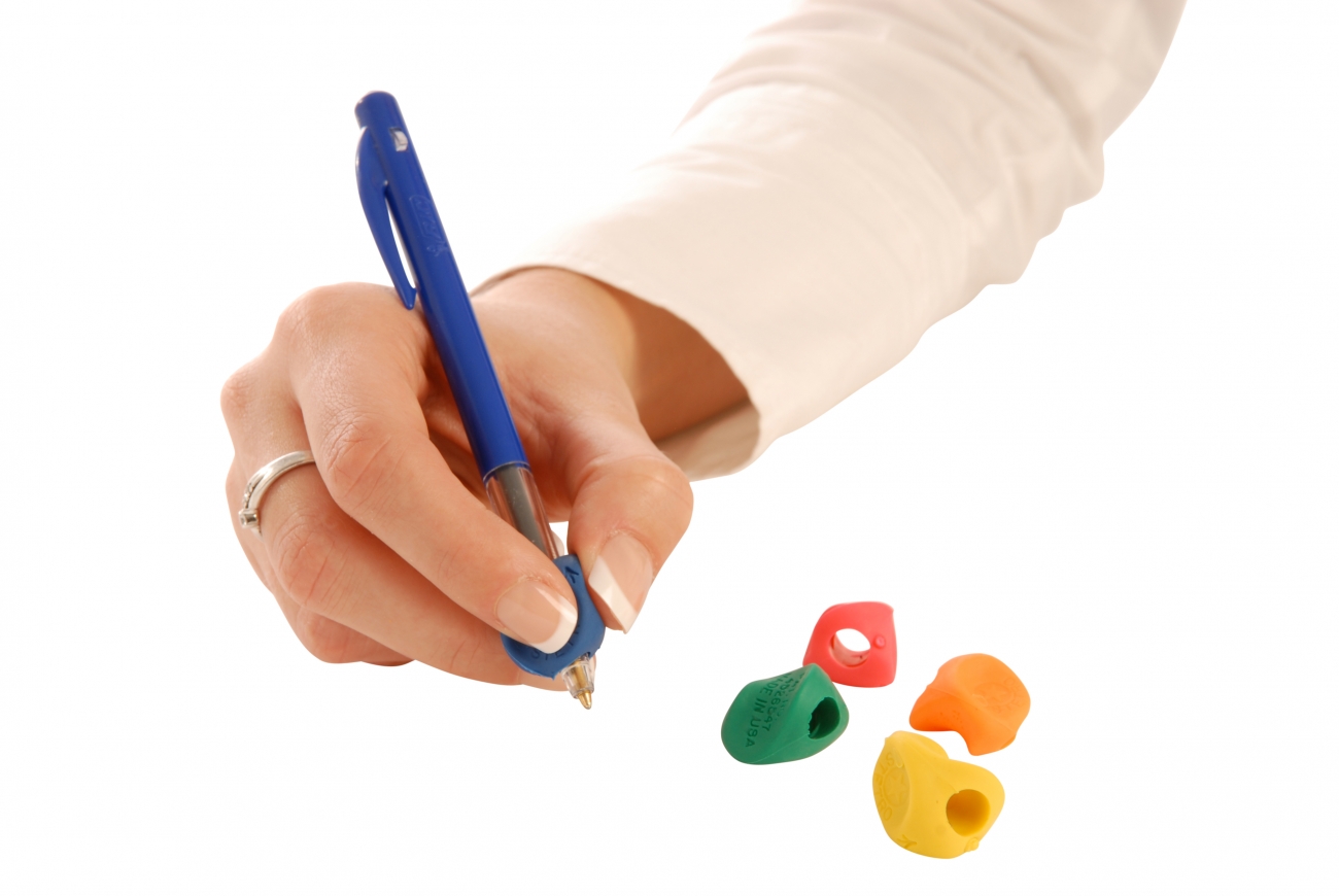 positie van de vingers. Voor zowel links- als rechtshandigen. Past op dunne potloden en pennen.