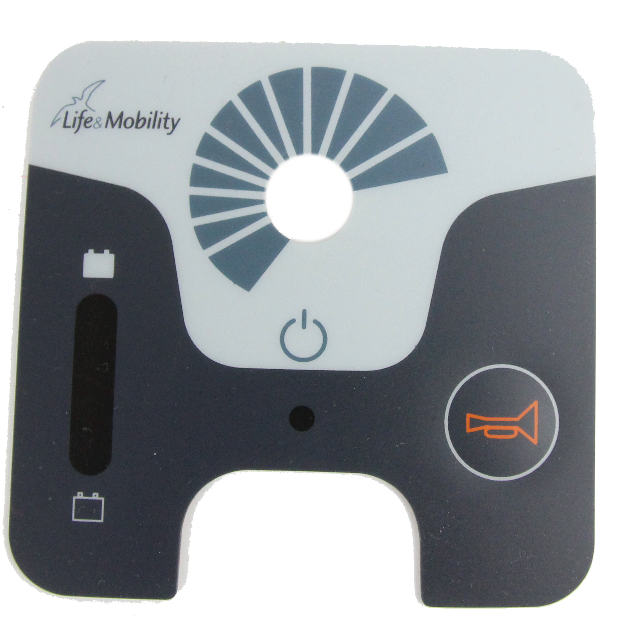 Stuur bedieningsfolie Life & Mobility Vivo origineel. Blijft uw claxon hangen? of werkt de aanduiding van uw accu niet meer goed dan is uw stuurfolie kapot dit kunt u eenvoudig vervangen u plakt deze folie op uw stuur dit werkt net als een sticker.