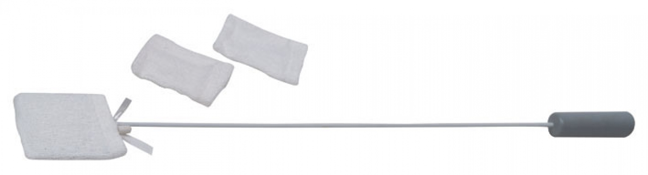 Deze teenwasser op steel wordt geleverd inclusief 2 badstof hoesjes.