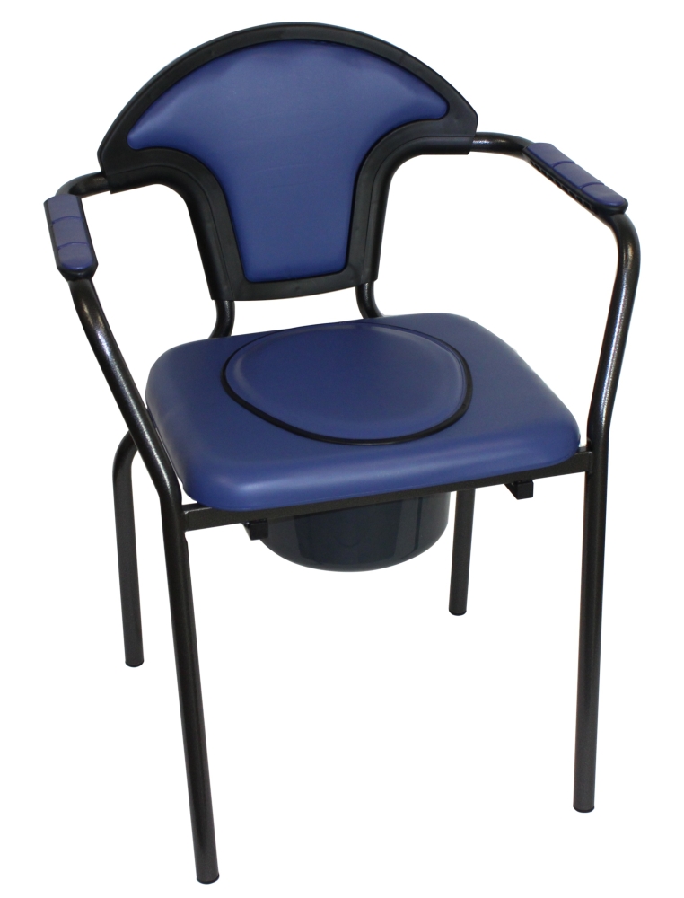Een stijlvolle en comfortabele toiletstoel. De stoel is ruim en comfortabel. Deze toiletstoel heeft een waterafstotende zachte bekleding, een gecoat metalen frame, een ergonomische rugleuning en twee sterke armleuningen voor een goede ondersteuning. De zachte zitting biedt comfort tijdens het zitten en kan geheel verwijderd worden. De ruimte tussen de armleuningen is extra breed. De toiletemmer is van bovenaf uitneembaar. Wanneer u de stoel niet gebruikt, plaatst u het losse deksel op de stoel. Wordt geleverd met toiletemmer met deksel.