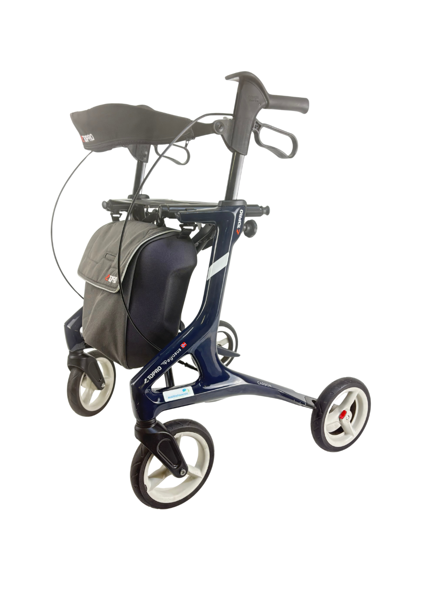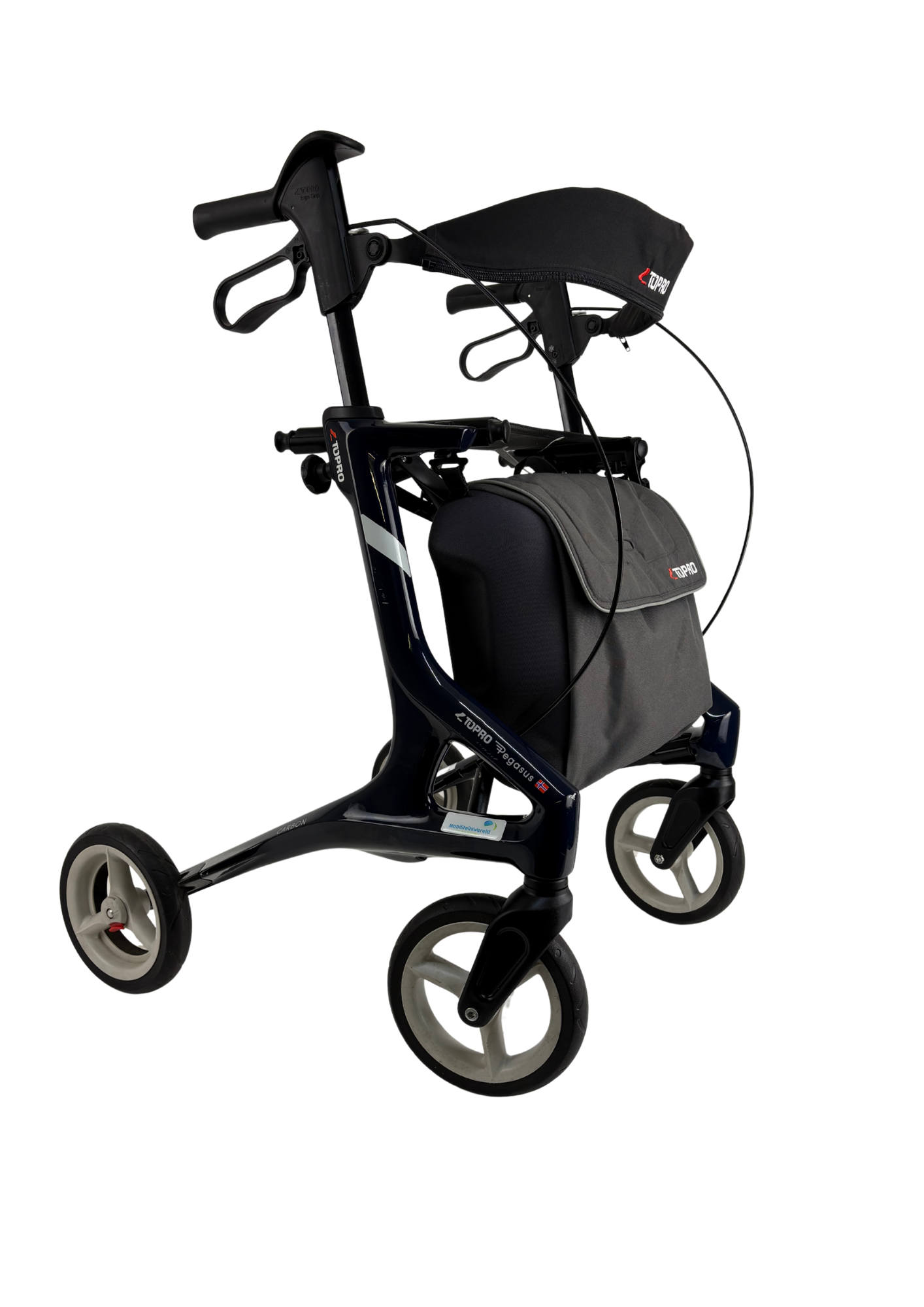 Gebruikte Topro Pegasus in de kleur Blauw. Deze lichtgewicht carbon Rollator is van bouwjaar 2021 en nog in perfecte staat. Heeft wel gebruikers sporen. Zie foto's voor de details.