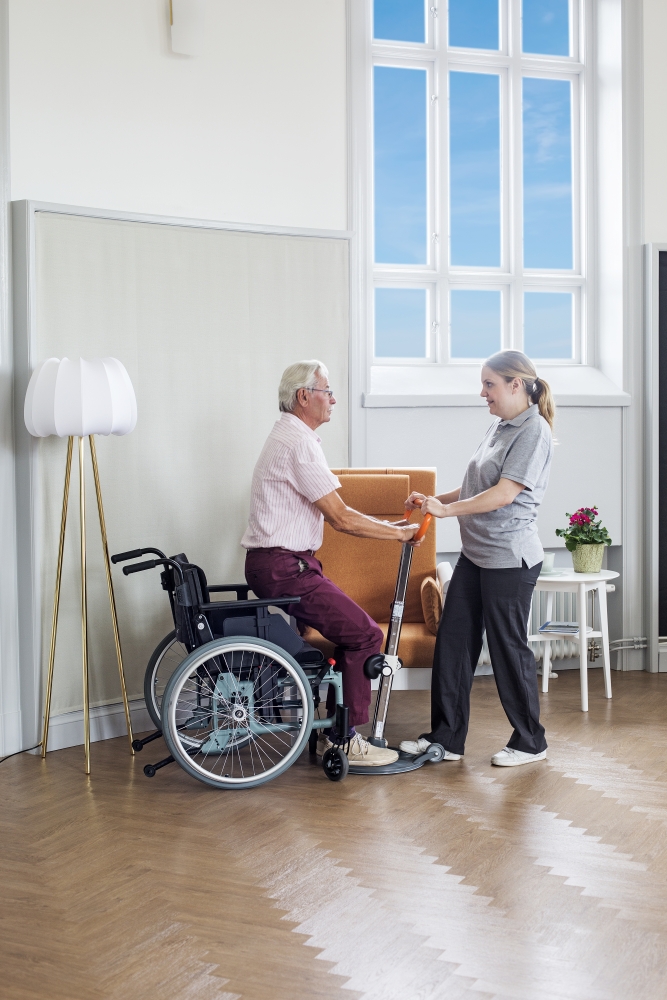 De compleet vernieuwde Etac Turner Pro is een praktisch hulpmiddel dat de gebruiker nog beter ondersteunt en activeert bij de transfer van de ene naar de andere zittende positie. De hulpverlener kan een veilige transfer waarborgen voor de gebruiker. De Turner Pro voorkomt valpartijen en vermindert de belasting van de hulpverlener. De handgreep en kniesteun zijn eenvoudig in hoogte verstelbaar, om comfort en veiligheid te vergroten. De handgreep is uitgevoerd in een contrasterende kleur en heeft vele gripmogelijkheden voor zowel gebruiker als hulpverlener. Makkelijk mee te nemen door zijn lichte gewicht en zeer compact. Daarnaast is de Turner Pro eenvoudig te verplaatsen door de transportwieltjes.