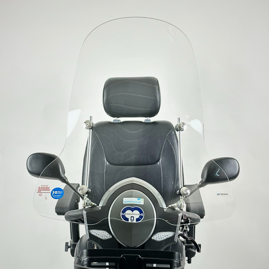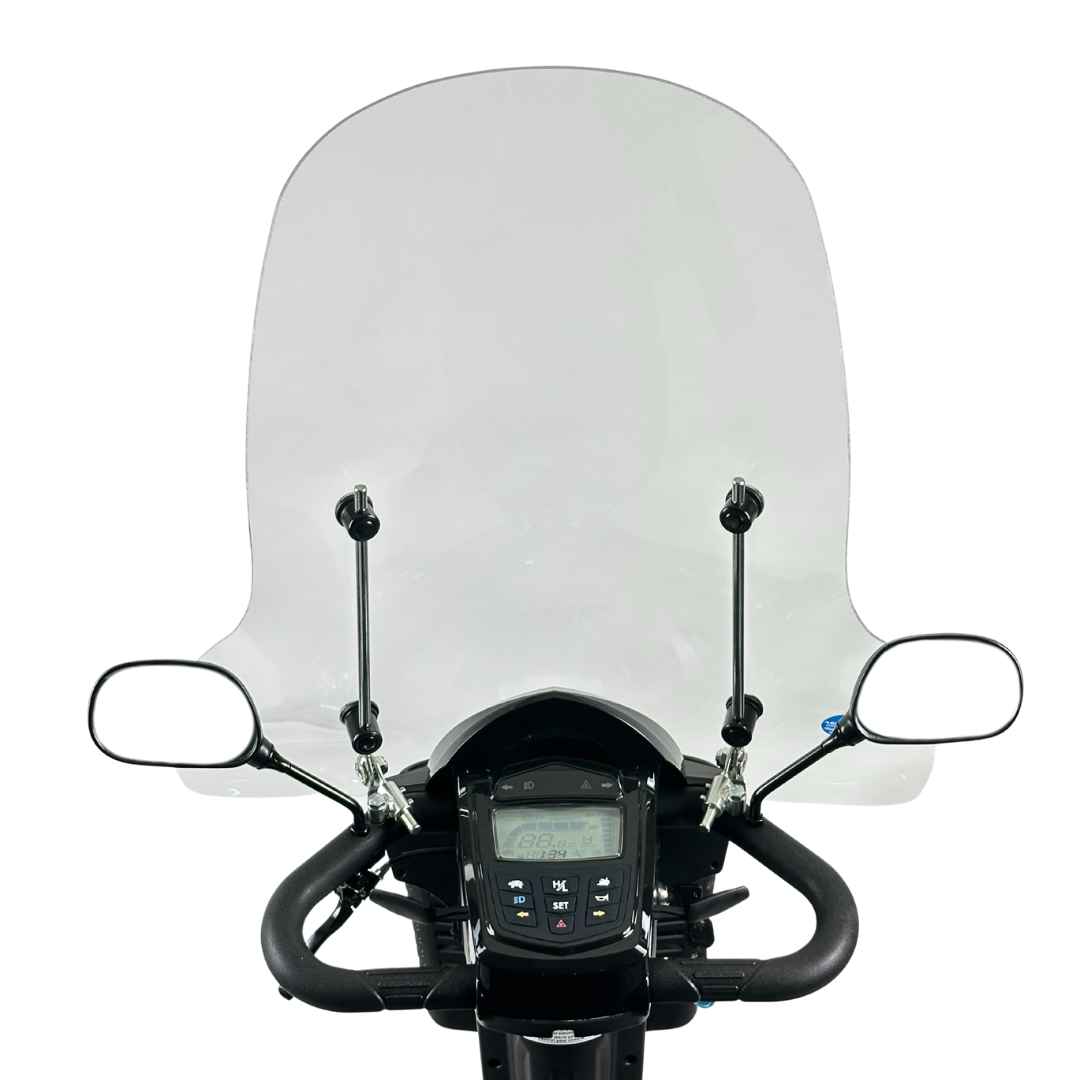 Wilt u comfortabeler rijden op uw scootmobiel zonder last te hebben van wind, regen of rondvliegende insecten? Dan is dit universele scootmobiel windscherm een uitstekende keuze. Het windscherm is volledig transparant, biedt helder zicht en is geschikt voor alle scootmobielen met een spiegelaansluiting.