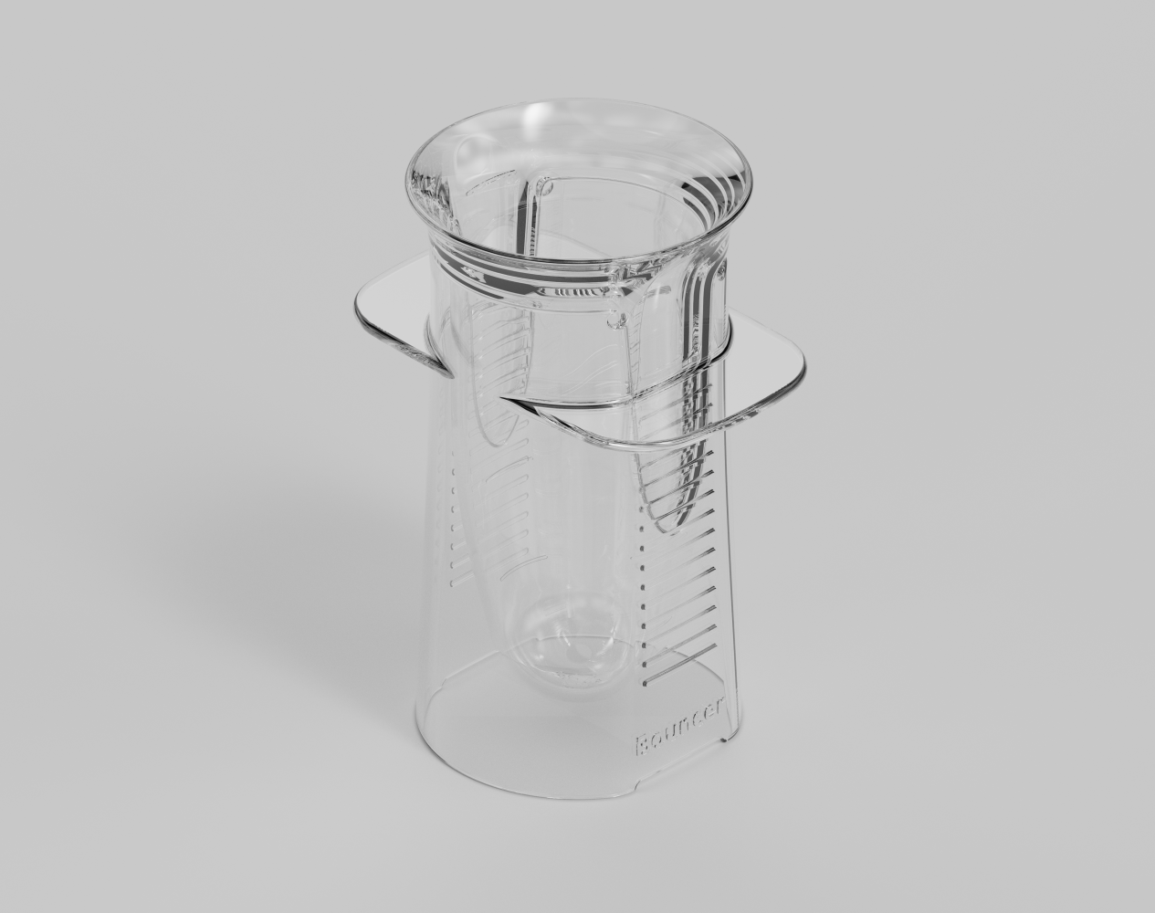 De tulpvormige bovenkant helpt om morsvrij te drinken. Door de geribbelde buitenzijde en de ‘gevleugelde’ handgrepen kan de beker op verschillende manieren vastgehouden worden. De brede basis zorgt voor voldoende stabiliteit. En door de wijde opening en conische binnenzijde kunt u drinken zonder het hoofd naar achteren te kantelen. Dubbelwandig, dus veilig vast te houden bij warme dranken. Maataanduidingen per 50 ml. Hoogte 14,5 cm, grip diameter 8,4 cm.