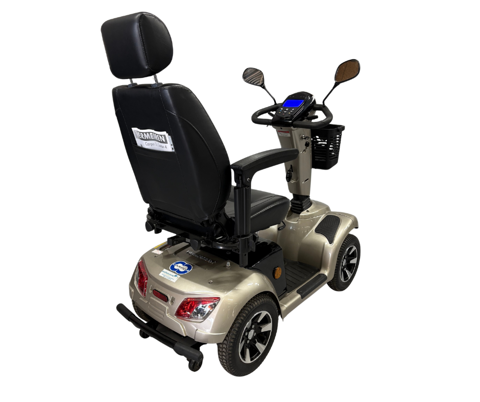 De Vermeiren Carpo 4 staat bekend om zijn stabiliteit, comfort en krachtige rijeigenschappen. Dankzij de volledige vering, grote luchtbanden en comfortabele, verstelbare stoel met hoofdsteun is dit model geschikt voor dagelijks gebruik en langere afstanden.