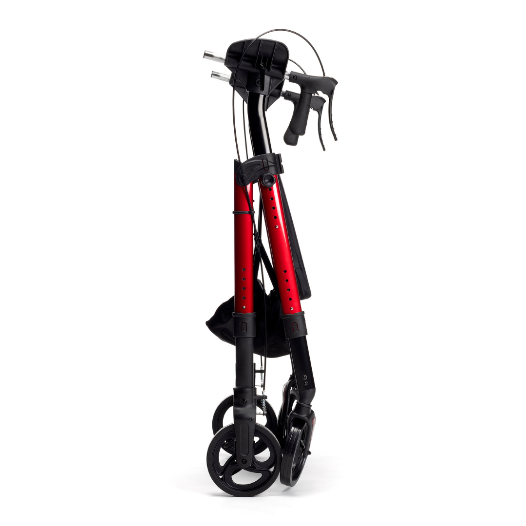 Voor transport of opslag is de rollator eenvoudig te verkleinen en compact op te vouwen.