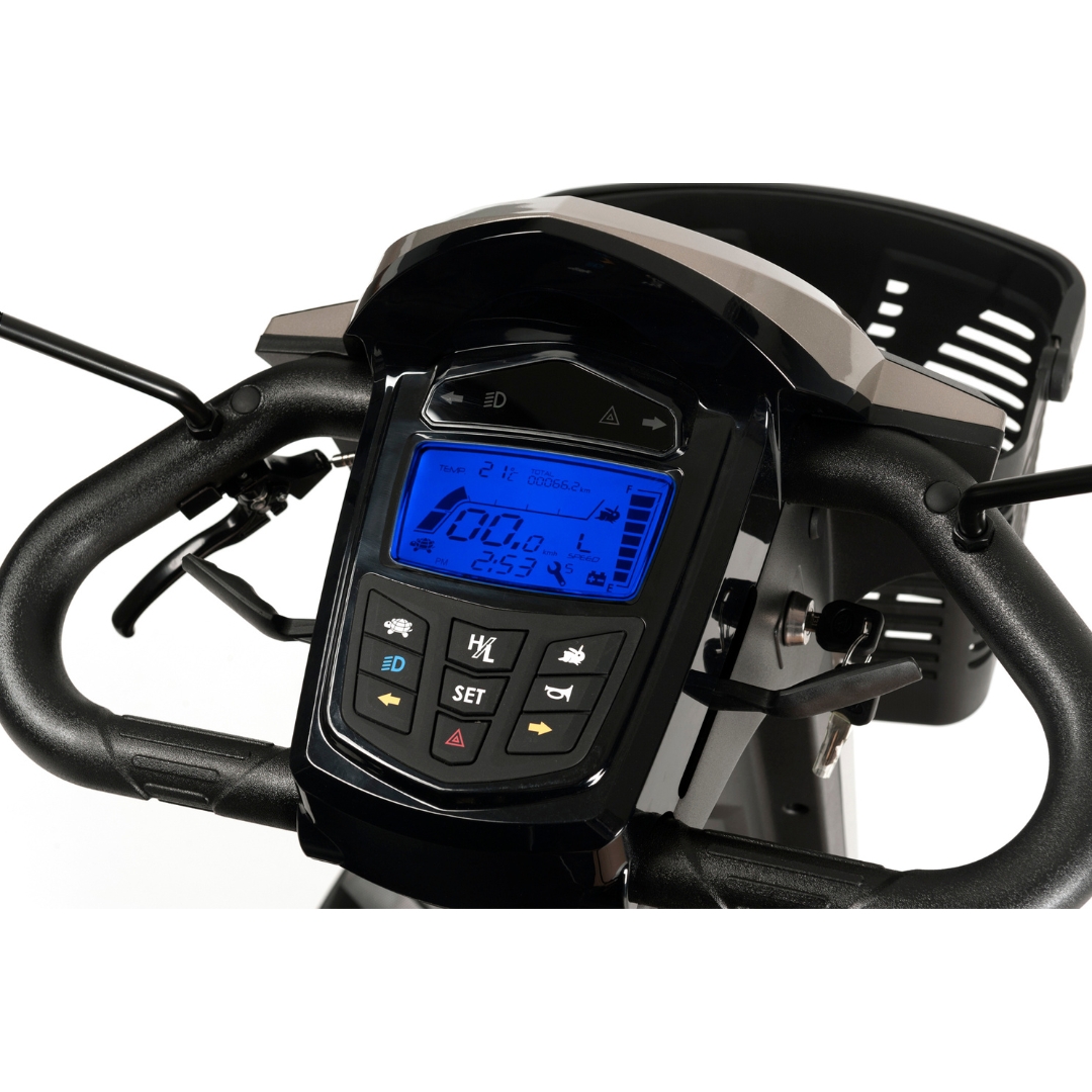 Deze scootmobiel is uitgerust met LED-verlichting voor en achter, evenals richtingaanwijzers, wat zorgt voor maximale zichtbaarheid en veiligheid, zelfs bij slecht weer of in het donker. Bovendien beschikt de Mercurius 4D over een digitaal display met ingebouwde kilometerteller en handige USB-poorten, waarmee je onderweg eenvoudig je smartphone of andere apparaten kunt opladen.