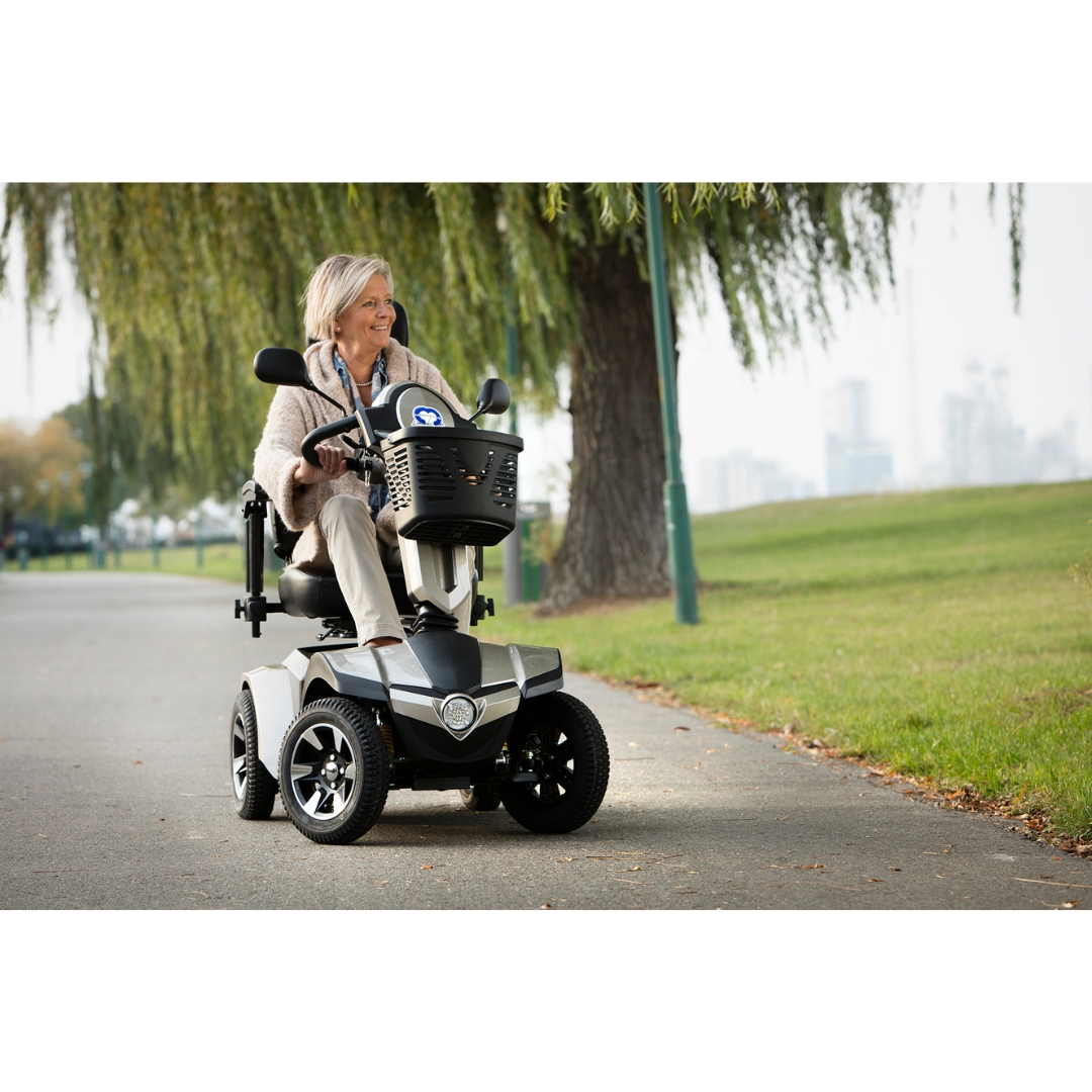 De Mercurius 4D is ontworpen voor de veeleisende gebruiker die comfort, veiligheid en prestaties waardeert. Dankzij de uitstekende vering en de volledig verstelbare draaibare stoel met comfortabele hoofdsteun, kun je genieten van een ongeëvenaard rijcomfort. De verstelbare armleuningen bieden extra flexibiliteit en comfort, zodat je altijd de juiste positie kunt vinden tijdens je ritten.