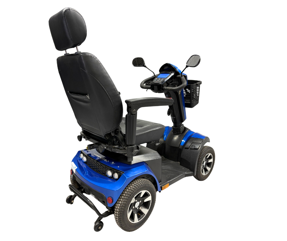 De scootmobiel wordt geleverd met 12 maanden garantie op de scootmobiel en 24 maanden garantie op de accu’s. Accu’s worden nieuw geplaatst (standaard EVX12053 12V 53Ah) en kunnen worden geüpgraded naar 100Ah voor extra actieradius.