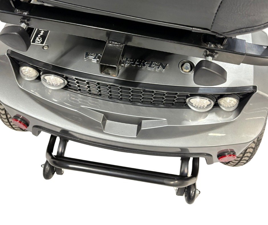 Deze Vermeiren Mercurius vierwiel scootmobiel uit bouwjaar 2021 in de kleur grijs heeft een lage kilometerstand van 1.140 km. Het betreft een zeer nette occasion die optisch bijna als nieuw oogt. De kappen zijn vrij van krassen en beschadigingen. Alleen aan de banden is zichtbaar dat de scootmobiel gebruikt is.