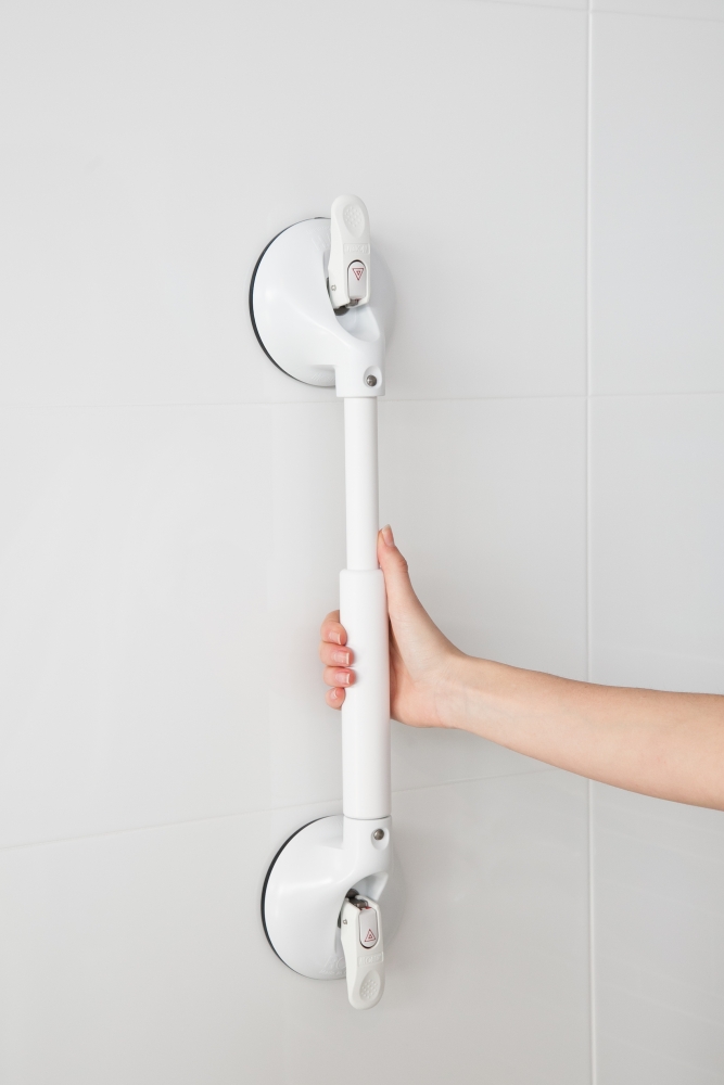 De ideale en meest betrouwbare oplossing voor mensen die niet mogen of willen boren! Alle wandbeugels zijn vervaardigd van hoogwaardig materiaal. Ze hebben een zeer grote hechtkracht (doorsnede zuignap 120 mm) en zijn in verschillende lengtes verkrijgbaar. De verstelbare mobiele wandbeugel is door de verstelbare handgreep zeer veelzijdig en past altijd, horizontaal, verticaal of diagonaal. Eenvoudig te bevestigen op een gladde, niet poreuze en vlakke ondergrond. Mobeli® mobiele wandbeugels zijn eenvoudig uit elkaar te halen en mee te nemen.