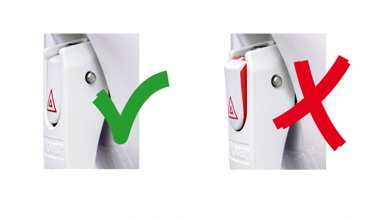 De Mobeli® wandbeugels worden geleverd met veiligheidsindicator. Een revolutionaire ontwikkeling, waarbij permanent de vacuümstand en daarmee de hechtkracht wordt gemeten en gecontroleerd. Zodra de veiligheidsindicator op de beugel omhoog komt, moet de beugel opnieuw worden vastgezet. Een veilig gevoel! Tevens zeer geschikt voor personen met een beperkt gezichtsvermogen, omdat de veiligheidsindicator bij vacuümverlies goed tastbaar is.