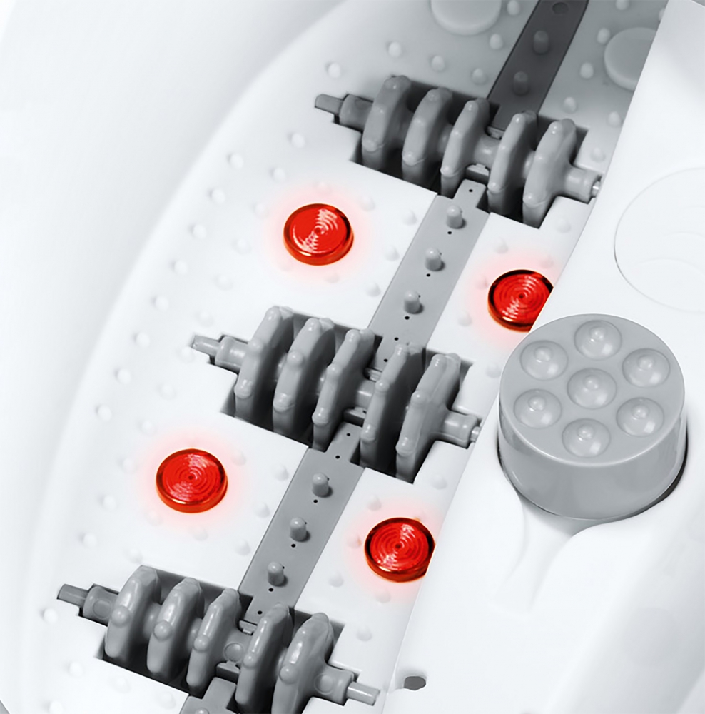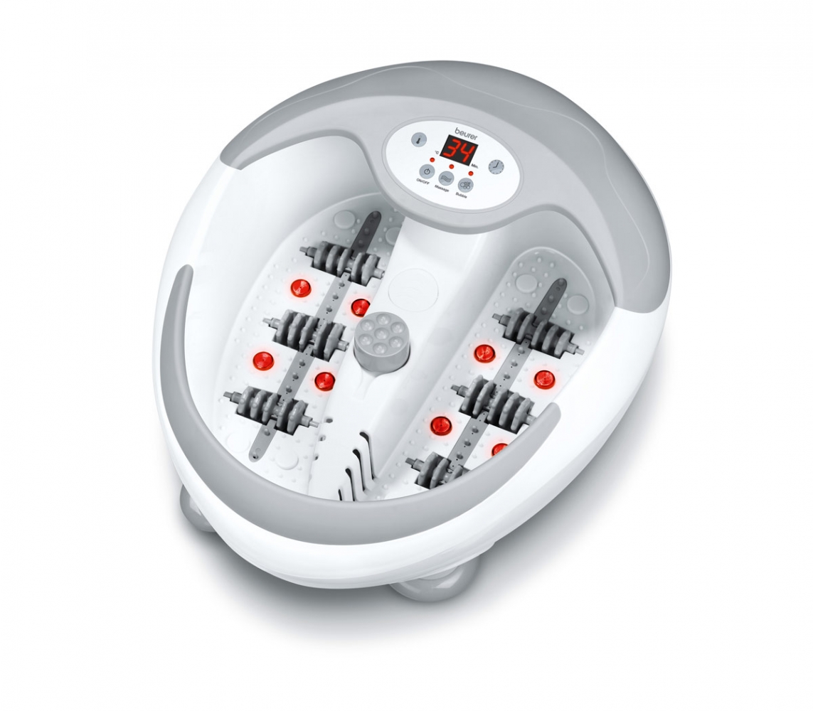 Ontspannend voetenbad met LED-display. Met vibrerende massage, bubbelmassage en verwarmd water op 5 niveaus. Geïntrigeerde magneten voor magneettherapie. Met uitneembare rollers voor reflexzone-massage en 3 losse opzetstukken voor voetmassage. Ook geschikt voor droog gebruik. 400 watt.