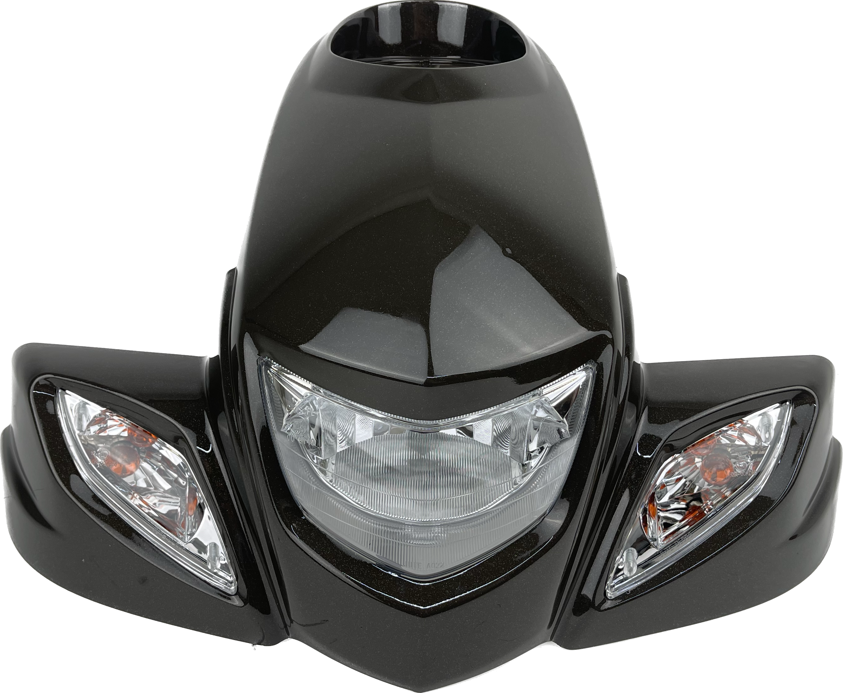 Wij leveren dit voorscherm in de kleur bruin compleet inclusief de knipperlichten en de koplamp ook zit de manchet dat tussen de voorkap en de stuurkap inkomt te zitten erbij.