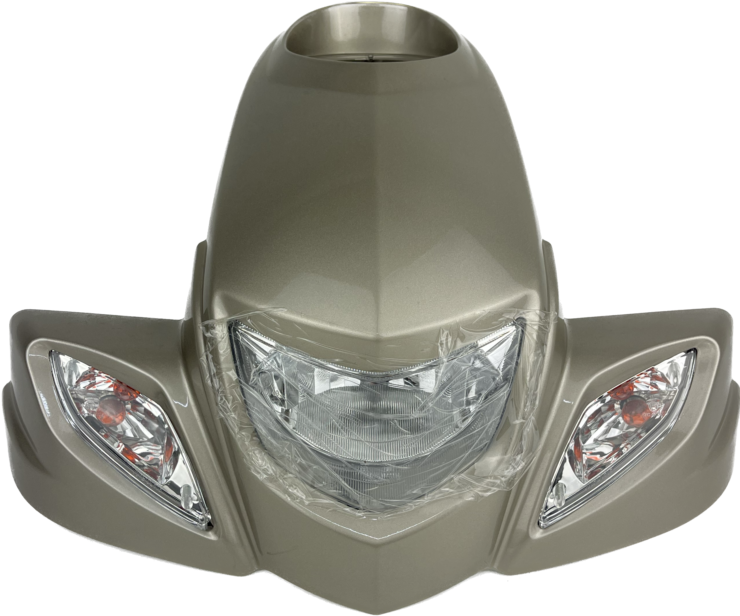 Wij leveren dit voorscherm in de kleur champagne compleet de knipperlichten en de koplamp ook zit de manchet dat tussen de voorkap en de stuurkap inkomt te zitten erbij.