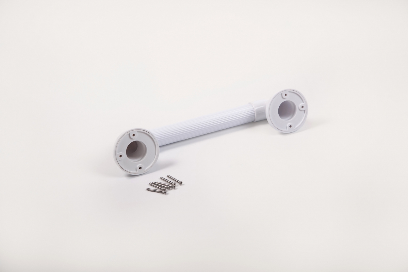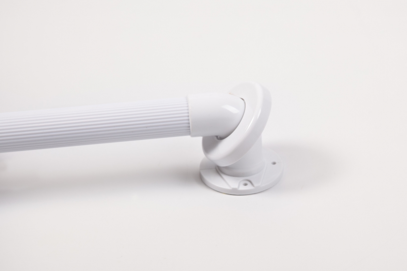 Deze kunststof wandbeugels hebben ronde bevestigings- en afdekplaatjes. De wandbeugels hebben groeven voor een betere grip.