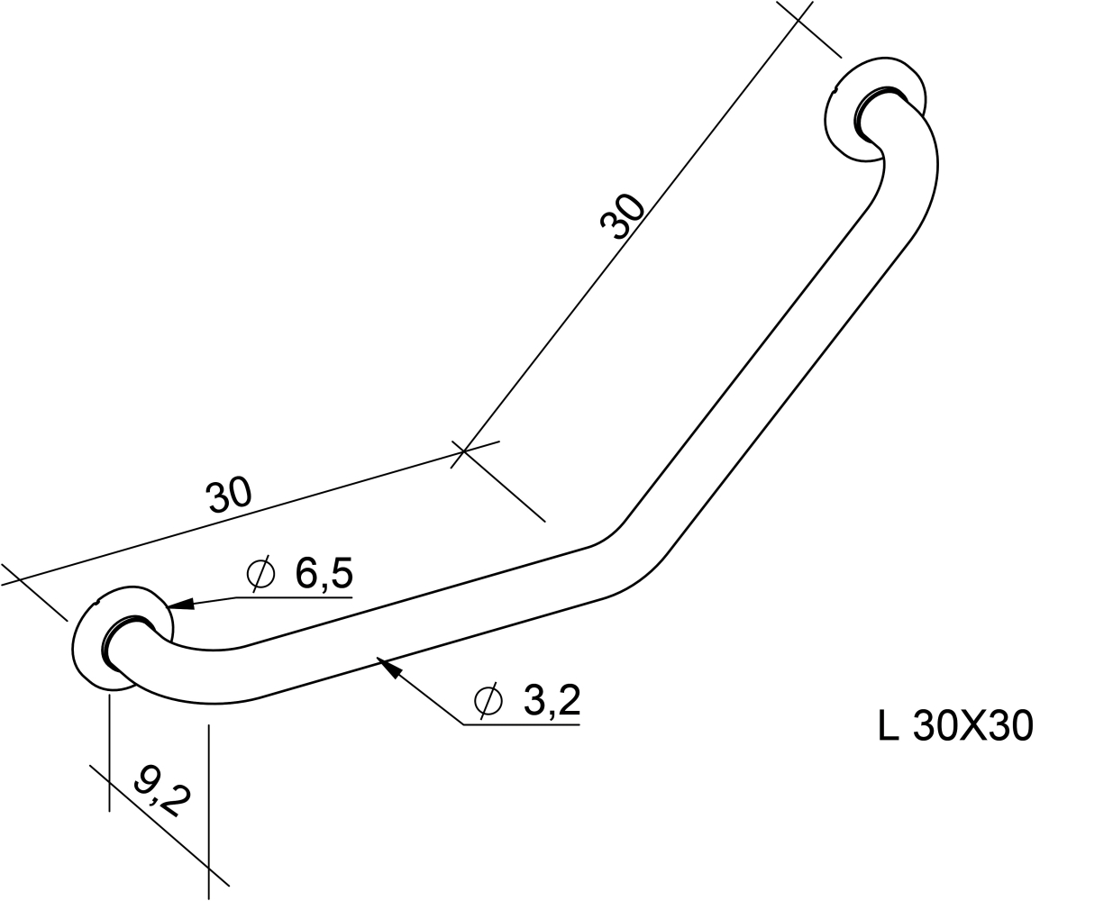 Wandbeugel RVS 135° gehoekt 30 x 30 cm