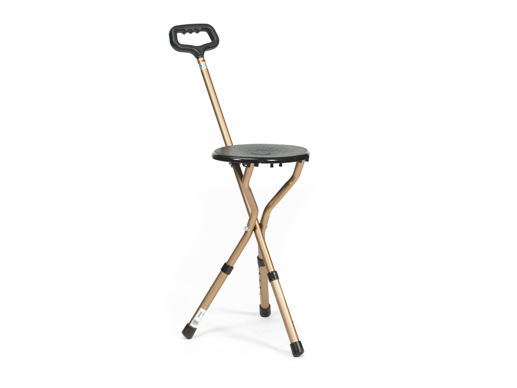 Naast dat het een wandelstok is kunt u hem ook nog gebruiken als stoel. Door middel van een handgreep is de stok heel eenvoudig uit te klappen tot een zitje.