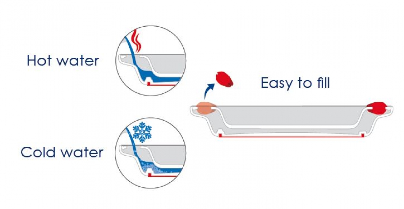 - Door de grote vulgaten gemakkelijk te vullen met warm of koud water.
