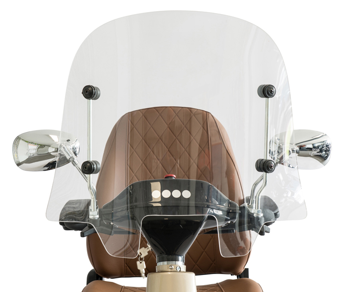 Wilt u een windscherm op uw scootmobiel dan is dit product zeker geschikt voor u. Dit windscherm kunt u monteren op alle scootmobielen die een aansluiting voor de spiegels hebben.